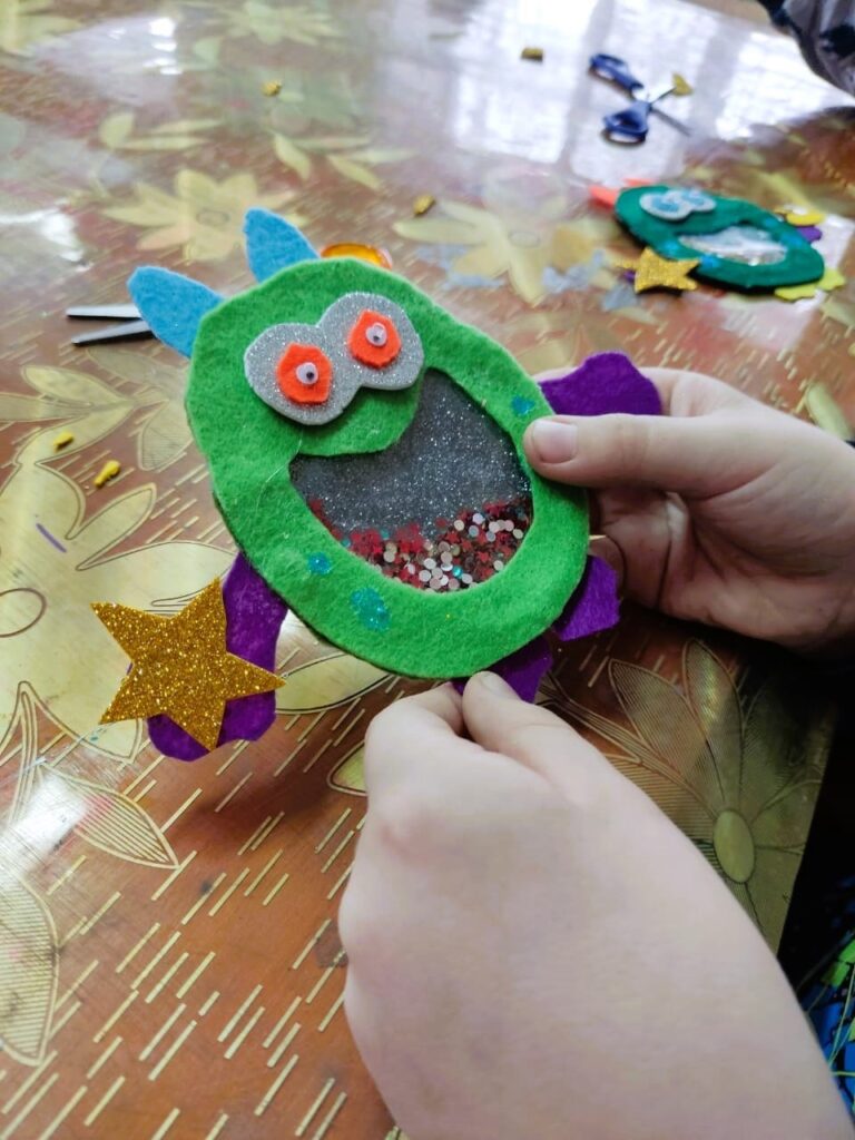 В детской библиотеке прошел мастер-класс по изготовлению космического персонажа из фетра. Дети с большим энтузиазмом приняли участие в этом мероприятии, создавая своих собственных уникальных персонажей. Каждый участник получил возможность проявить свою фантазию и творческие способности, выбирая цвета, формы и детали для своих персонажей. В результате получились яркие и оригинальные космические герои, которые дети могли забрать домой в качестве сувениров.