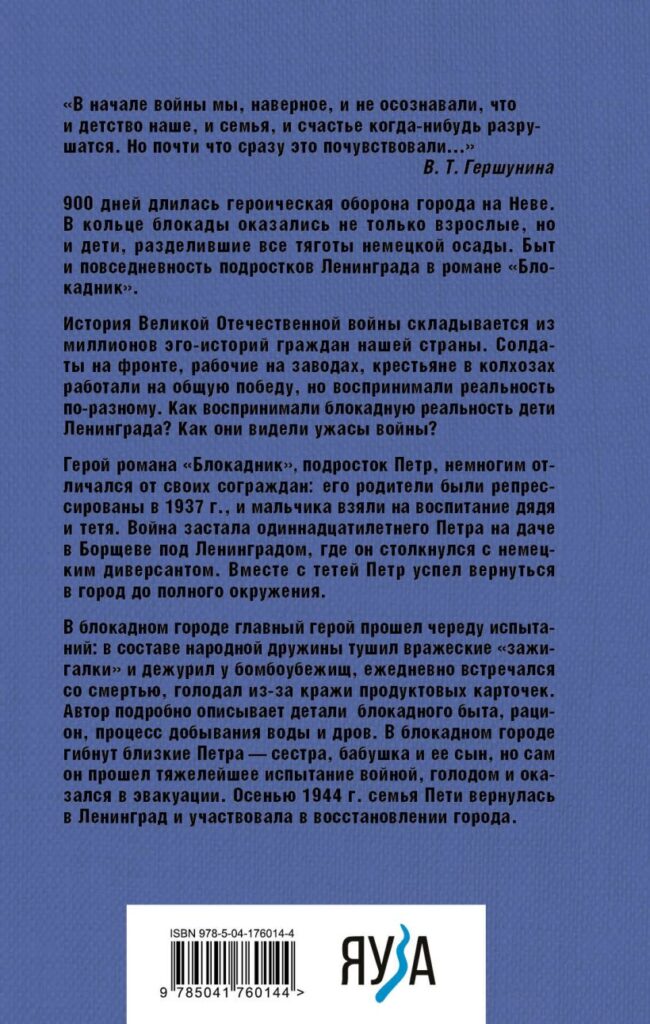 В книге переплетаются две темы: тема блокадного Ленинграда и тема репрессий. Перед читателем — реальные воспоминания реальных людей. По сути, это художественно-документальная проза, а автор — сын главного героя книги, подростка Петра.