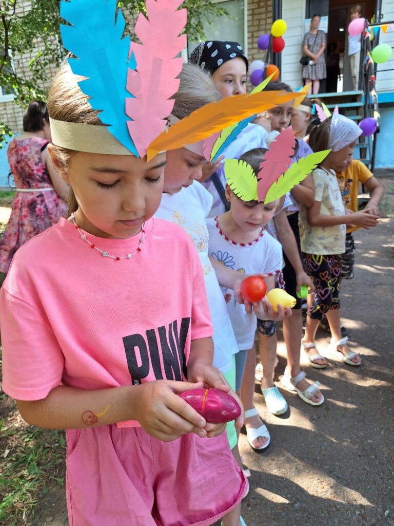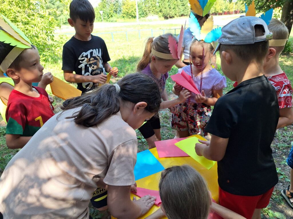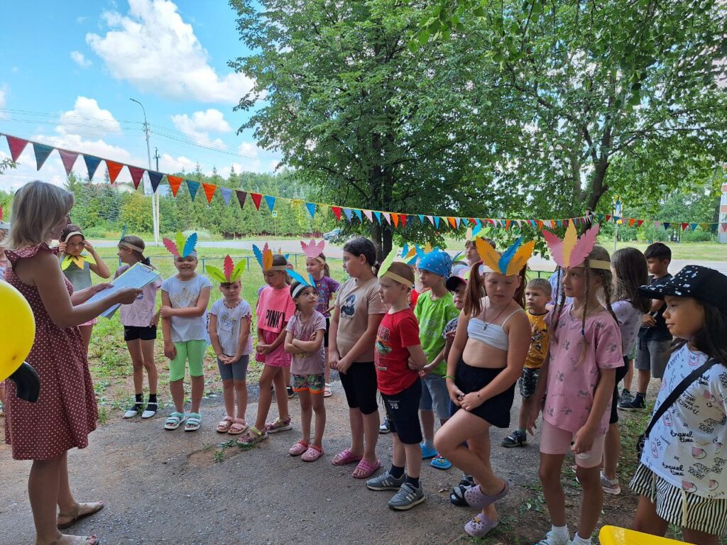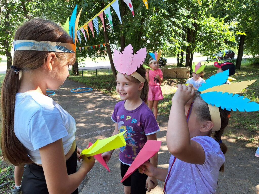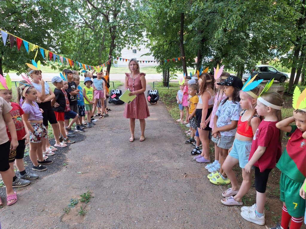 Для юных читателей на территории детской библиотеки была организована увлекательная и познавательная площадка под названием «Библиотечная поляна». Эта конкурсно-игровая программа стала настоящим праздником для детей разных возрастов. Ребята, пришедшие на мероприятие попробывали пройти все испытания, чтобы стать настоящими индейцами: такими же быстрыми, ловкими и меткими. Перед началом состязания ведущая рассказала о жизни и быте индейцев. Облачившись в национальные головные уборы и разделившись на два племени мальчишки и девчонки приступили к испытаниям. Соревновались в меткости в конкурсе «Попади в пасть дракона», «Метание глиняных черепков». В испытании «Приручи сокола» племена из цветной бумаги складывали оригами в виде птицы и отправляли их в полет до цели. Большой интерес вызвал конкурс «Меткий томагавк», где с помощью ракеток дети передавали мяч участникам команды. В одном из заданий участники команды должны были прокатить шарик через туннель, сложенный из бумажных трубочек. За выполненные задания юным индейцам были вручены сладкие призы.