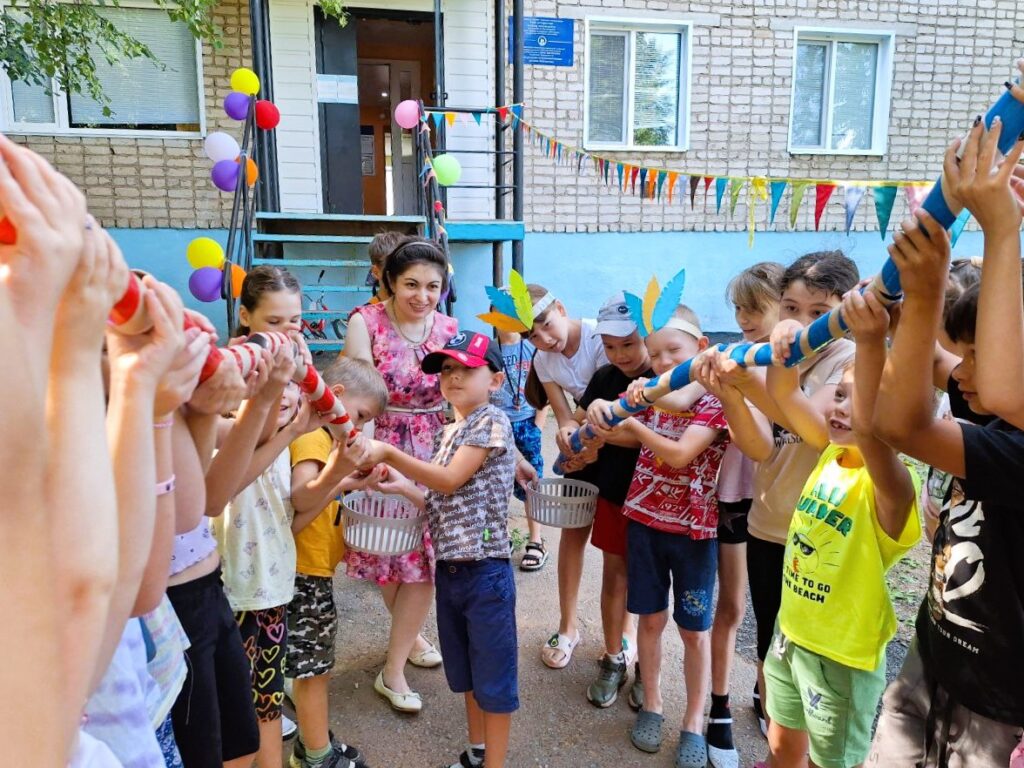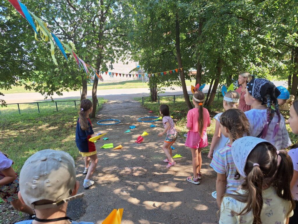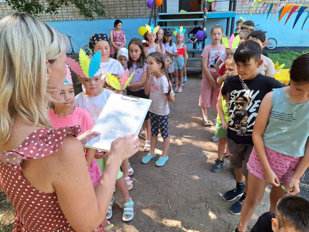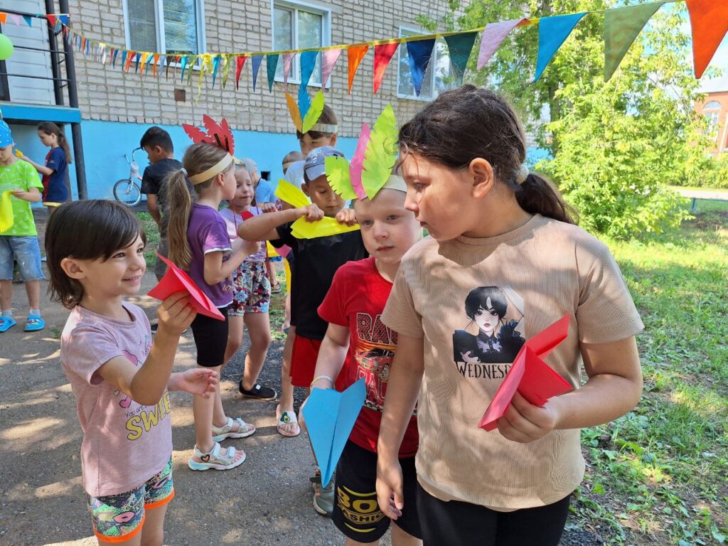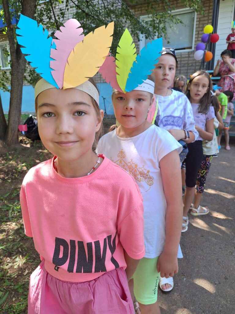 Для юных читателей на территории детской библиотеки была организована увлекательная и познавательная площадка под названием «Библиотечная поляна». Эта конкурсно-игровая программа стала настоящим праздником для детей разных возрастов. Ребята, пришедшие на мероприятие попробывали пройти все испытания, чтобы стать настоящими индейцами: такими же быстрыми, ловкими и меткими. Перед началом состязания ведущая рассказала о жизни и быте индейцев. Облачившись в национальные головные уборы и разделившись на два племени мальчишки и девчонки приступили к испытаниям. Соревновались в меткости в конкурсе «Попади в пасть дракона», «Метание глиняных черепков». В испытании «Приручи сокола» племена из цветной бумаги складывали оригами в виде птицы и отправляли их в полет до цели. Большой интерес вызвал конкурс «Меткий томагавк», где с помощью ракеток дети передавали мяч участникам команды. В одном из заданий участники команды должны были прокатить шарик через туннель, сложенный из бумажных трубочек. За выполненные задания юным индейцам были вручены сладкие призы.