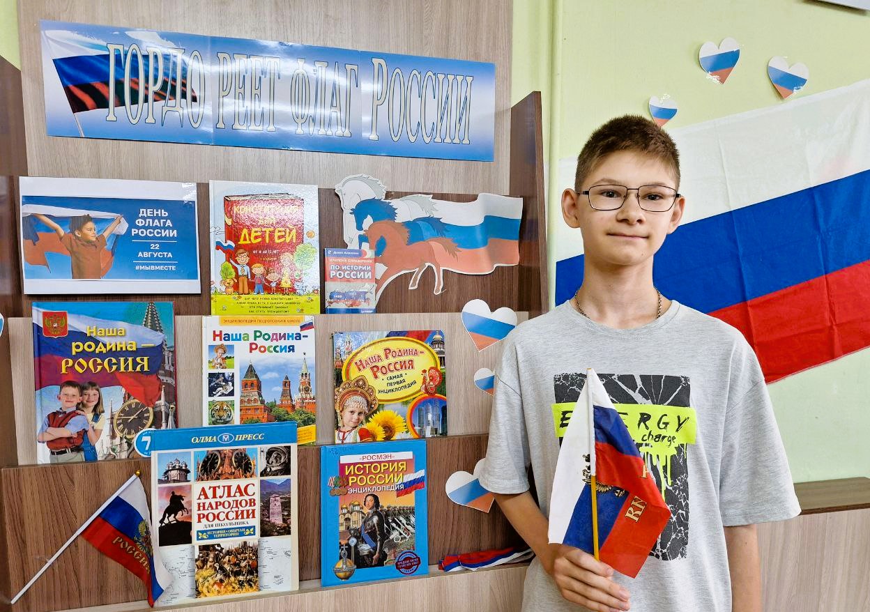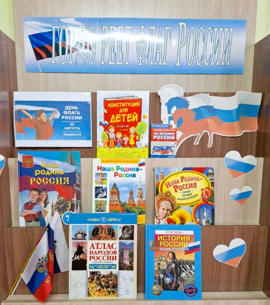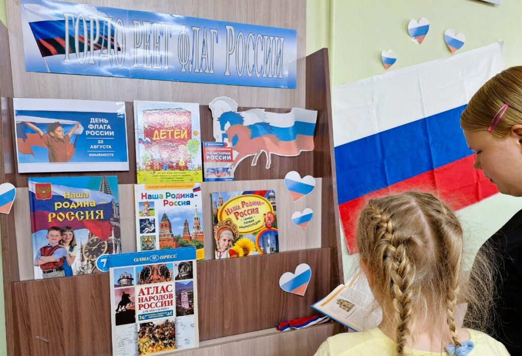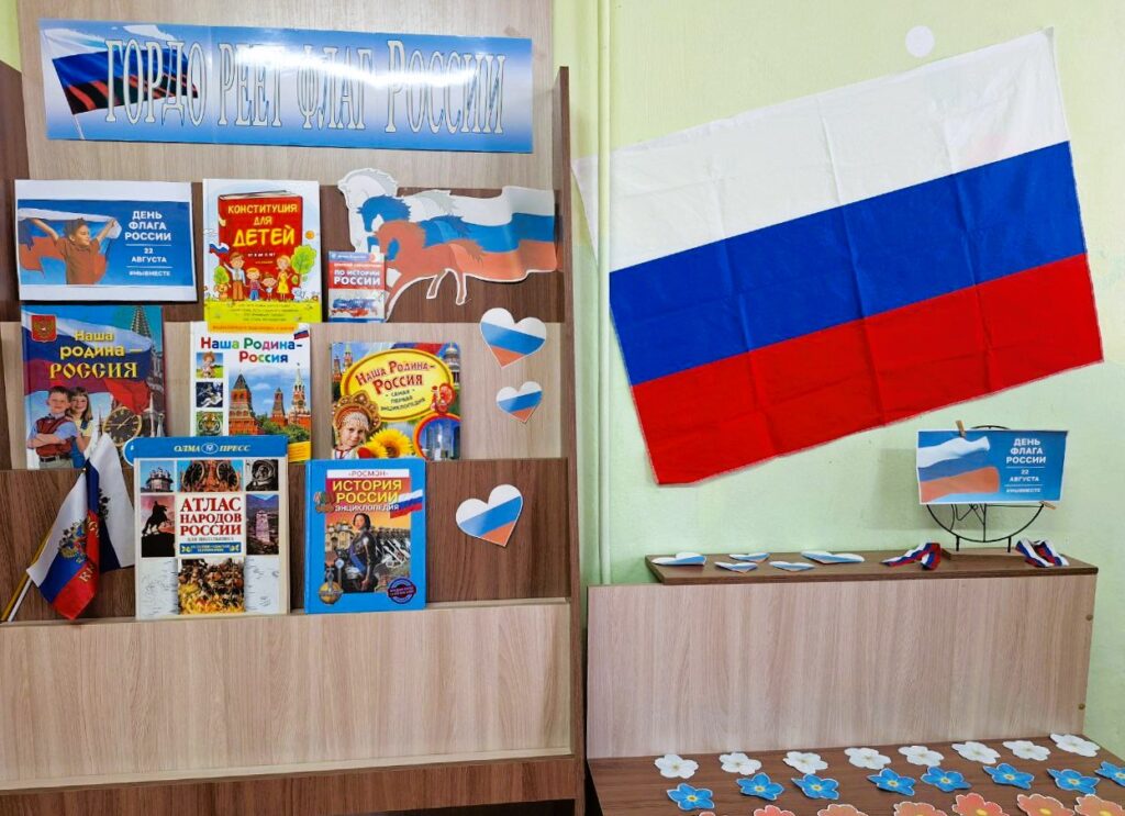 В рамках Дня Государственного флага РФ библиотекари провели беседу с читателями у книжной выставки. Беседа была направлена на формирование у детей уважительного отношения к государственным символам страны, воспитание патриотических чувств, любви к своей Родине. Ребята узнали об истории создания Государственного флага страны, о символическом значении цветов российского триколора.