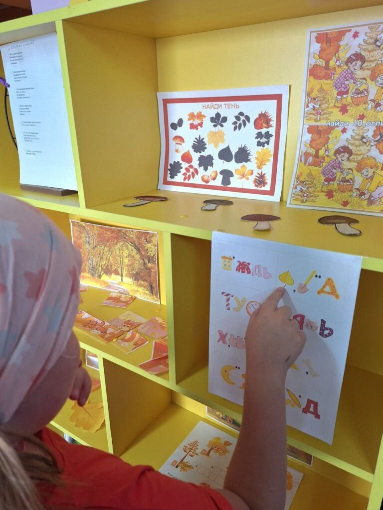 Выставка-задание «Осенние головоломки» на младшем абонементе посвящена осени. Она включает в себя загадки, викторины, ребусы и другие задания, связанные с осенней природой, животными и растениями.