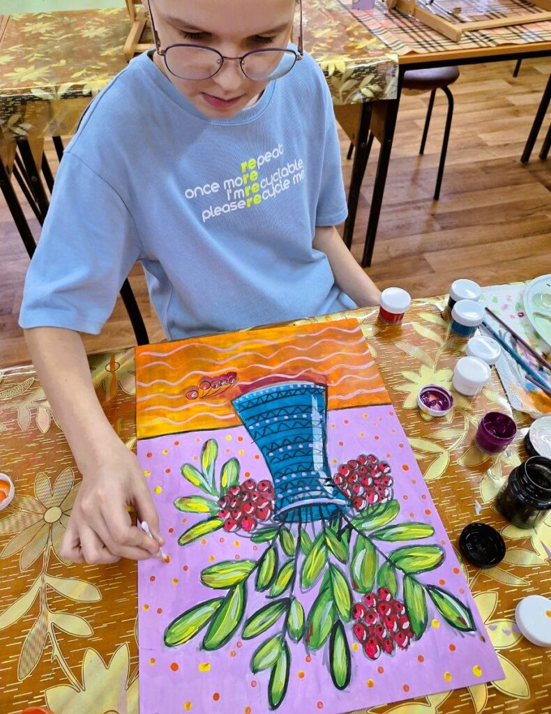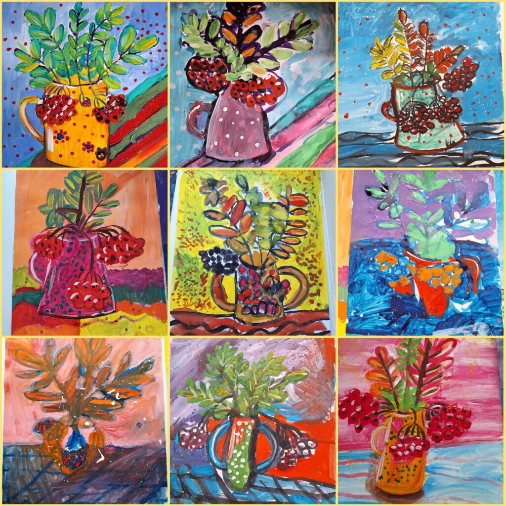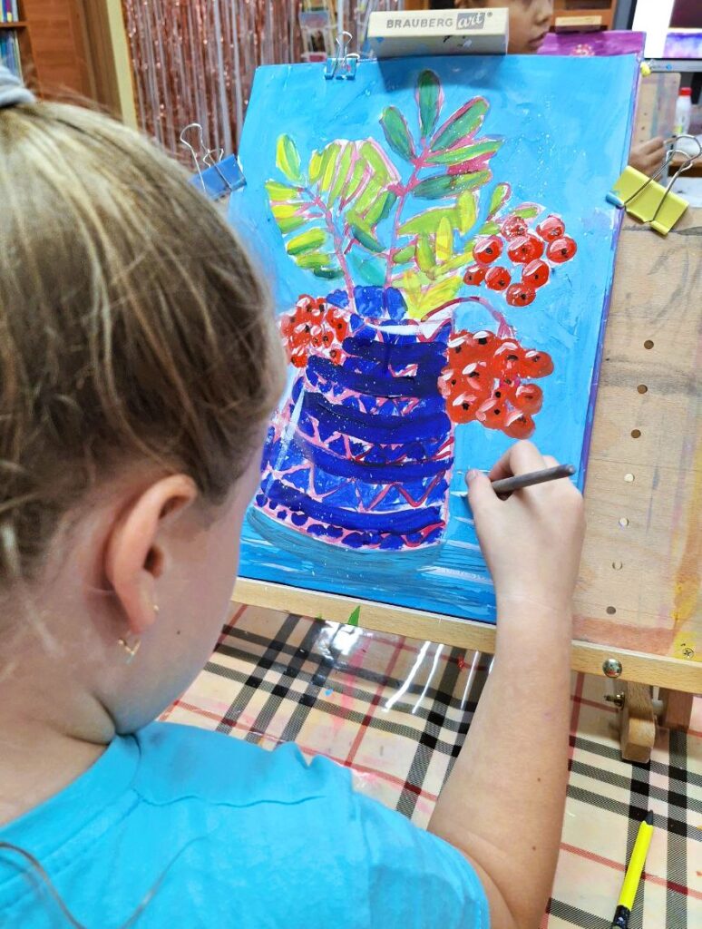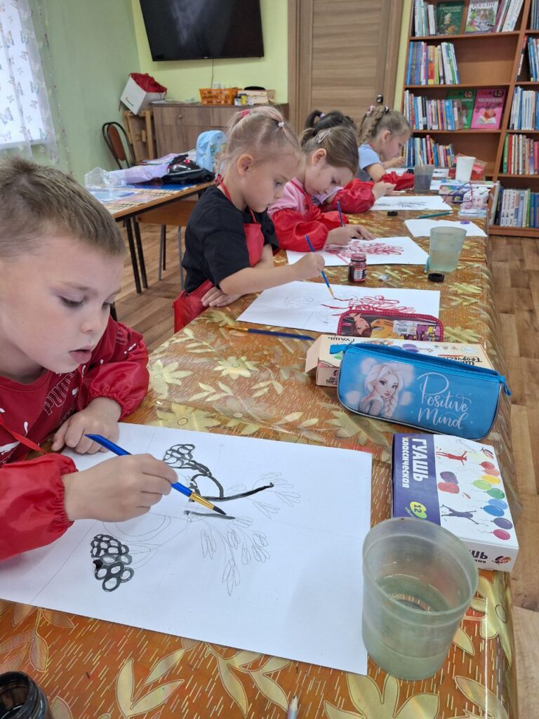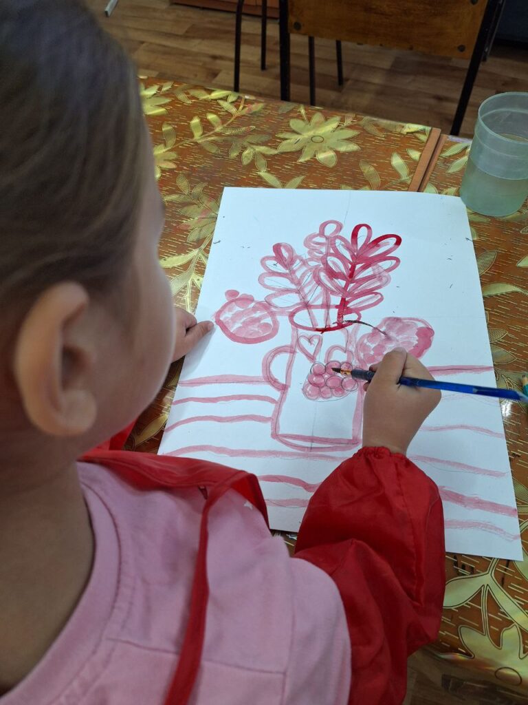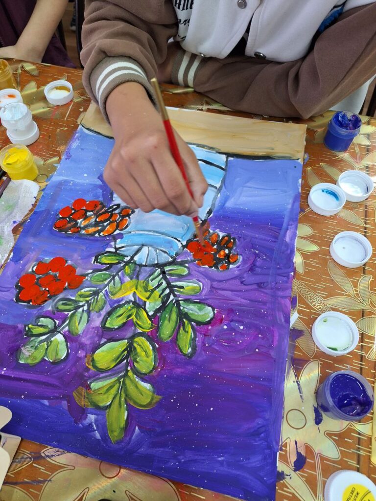 Тушь + гуашь. Осень. Рябина. ИЗО. Суббота. Библиотека.