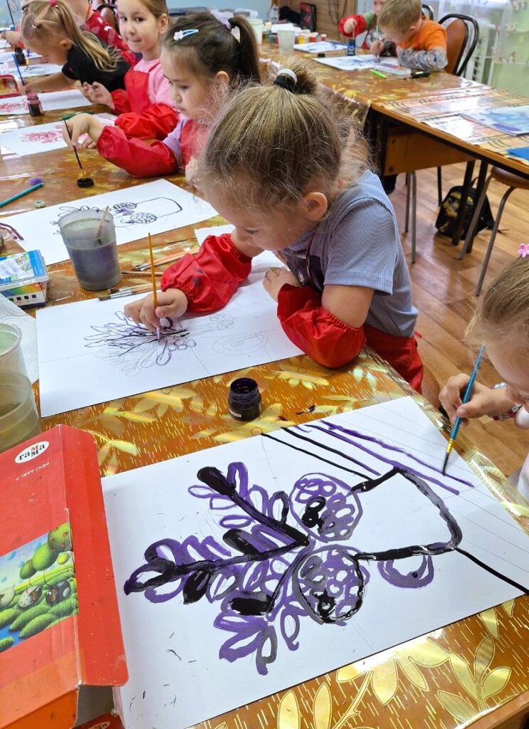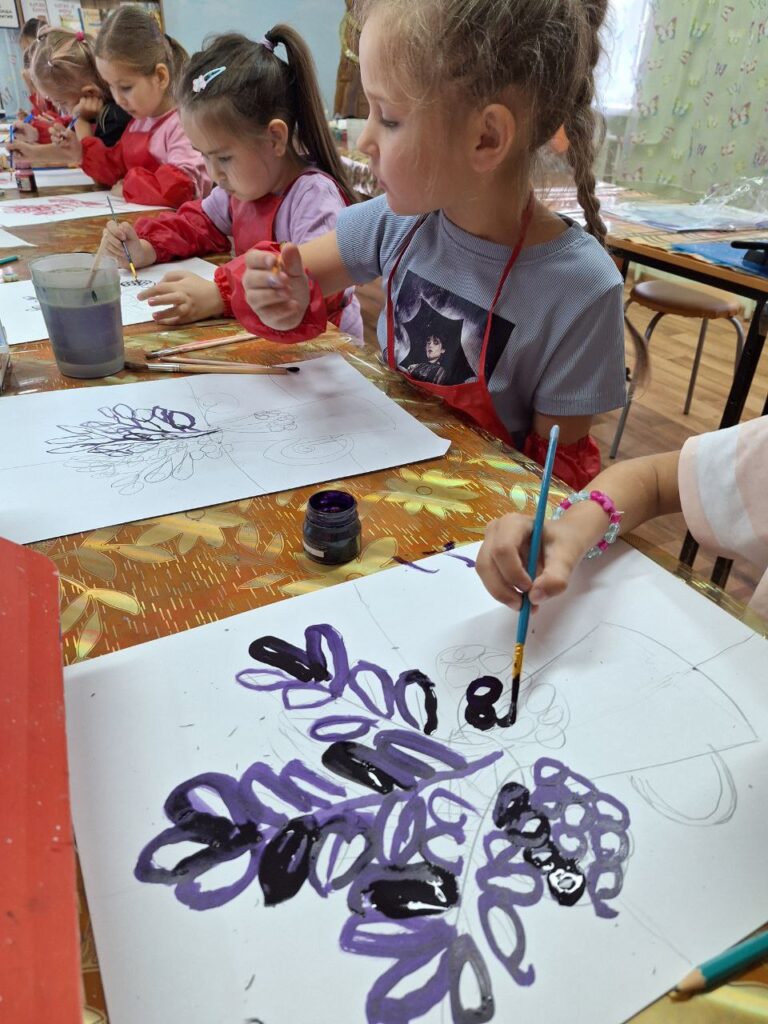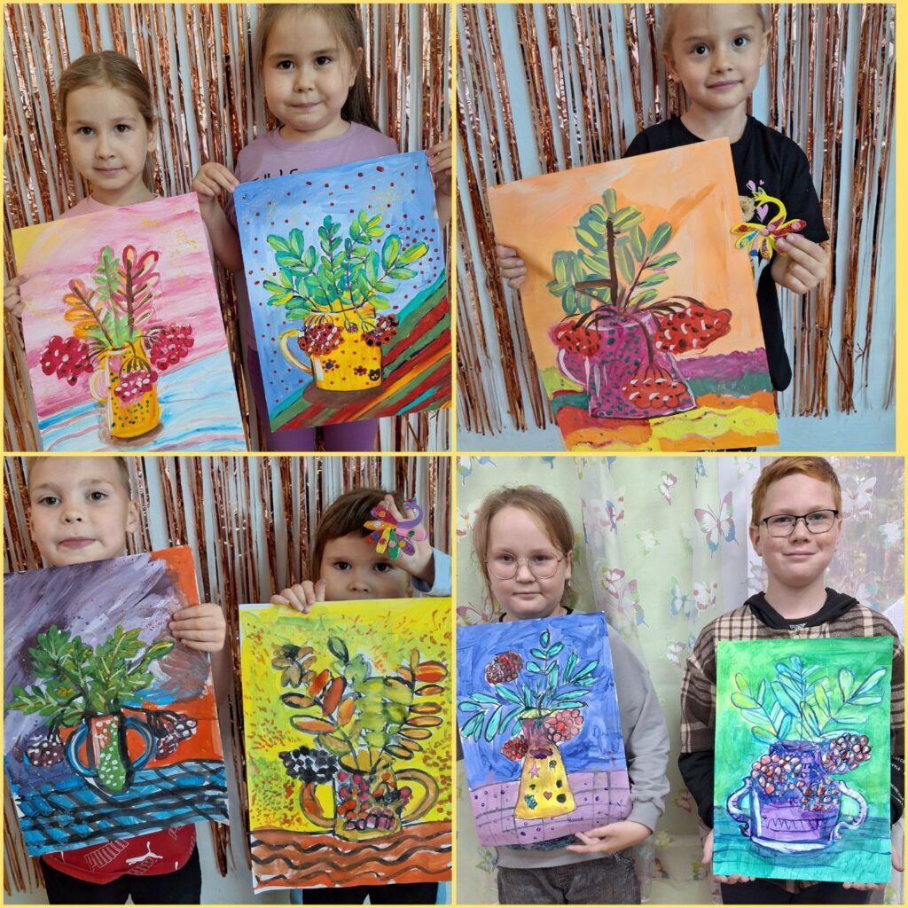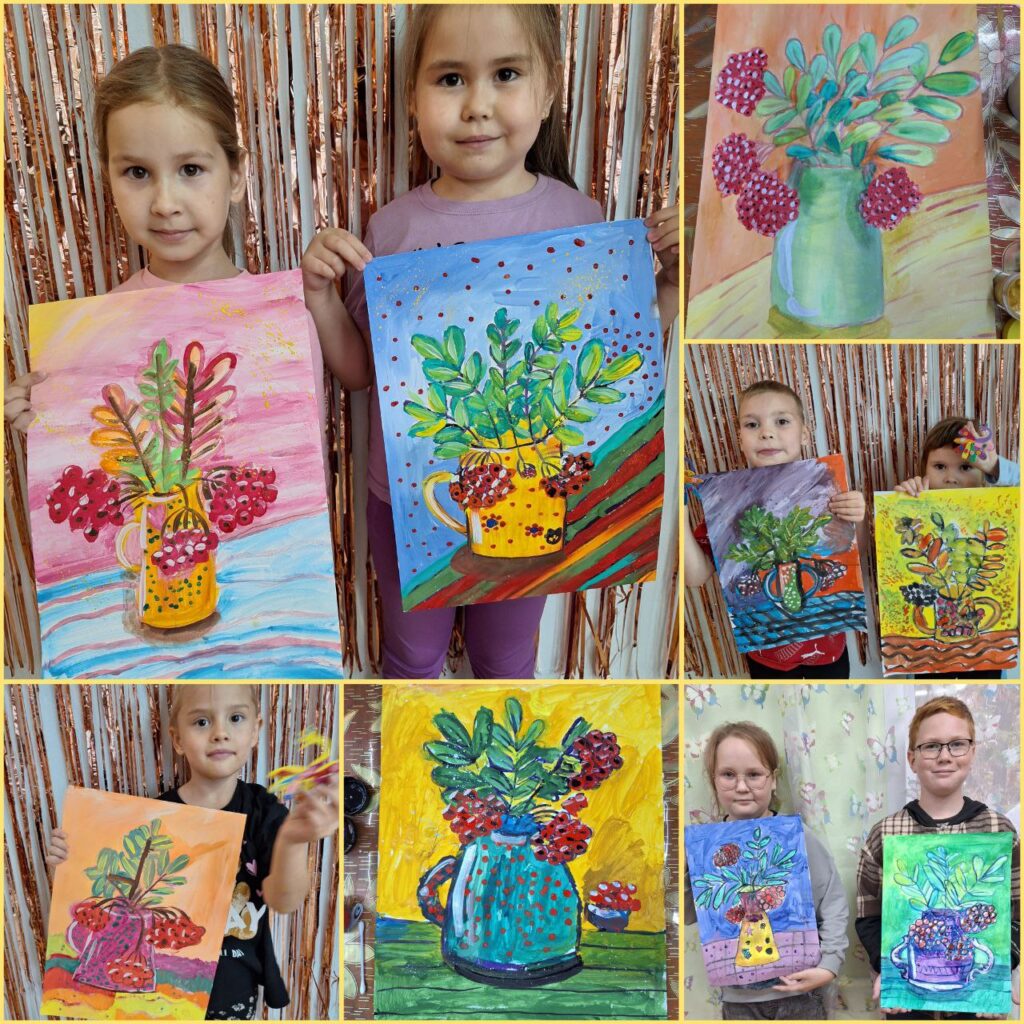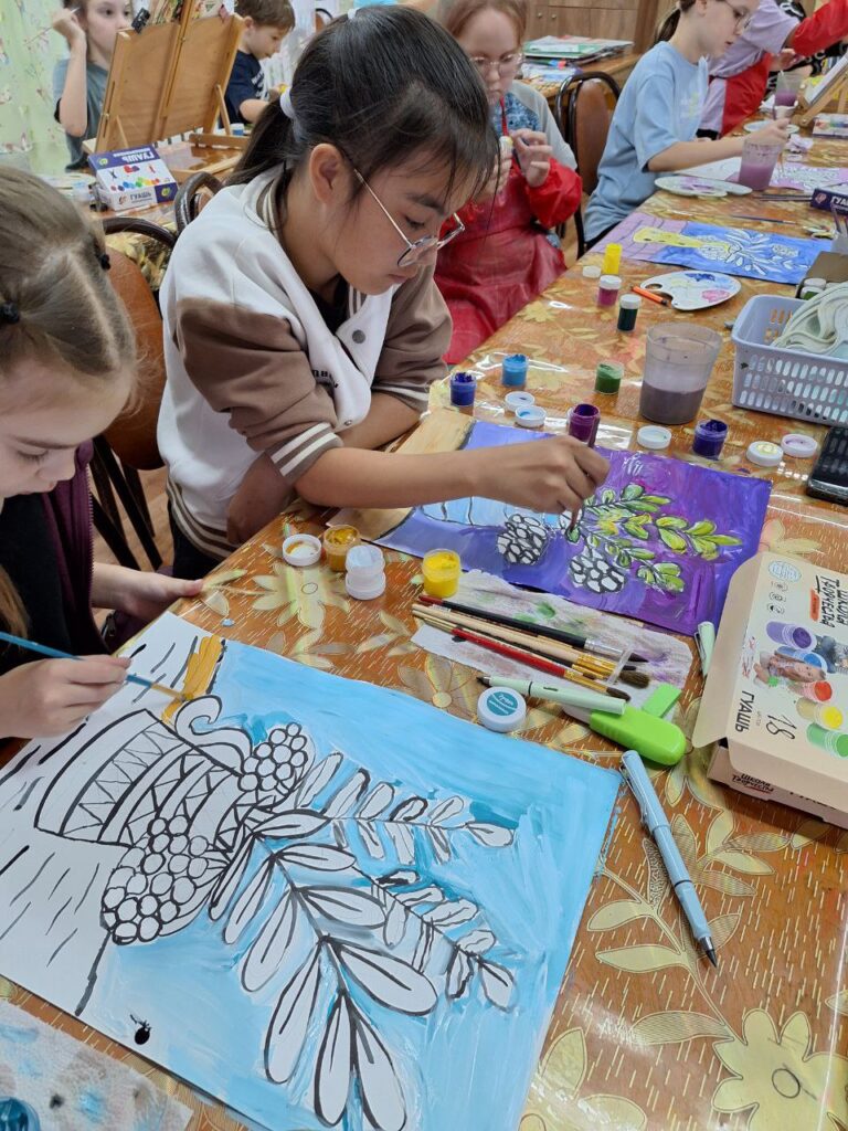 Тушь + гуашь. Осень. Рябина. ИЗО. Суббота. Библиотека.
