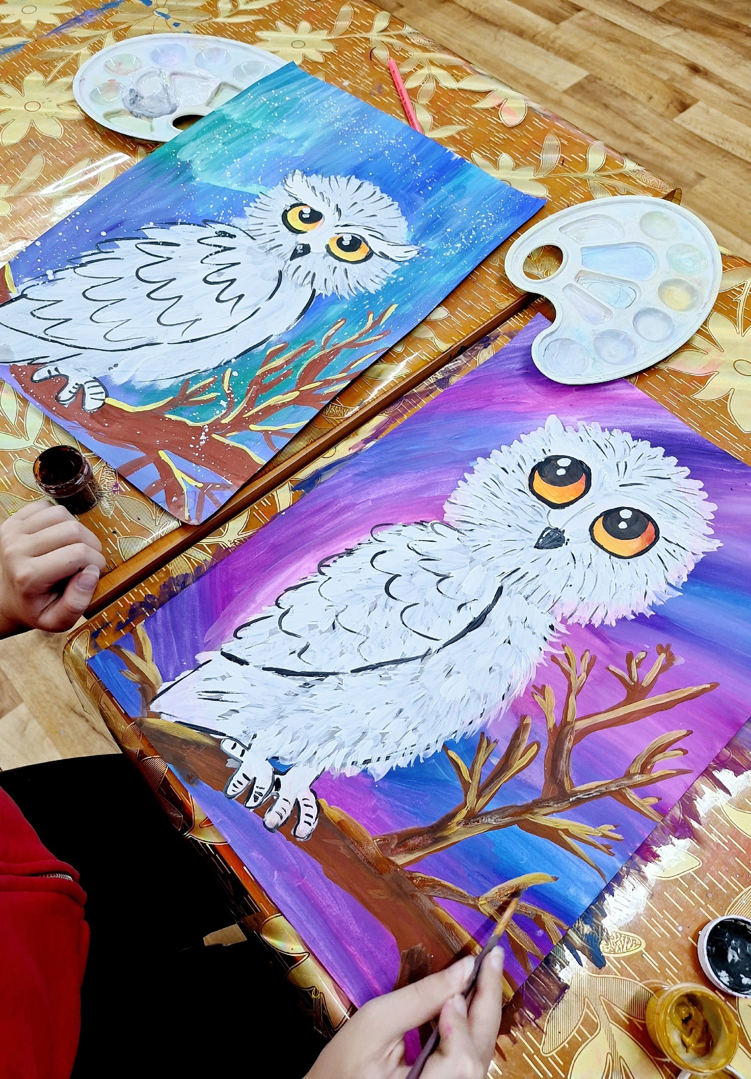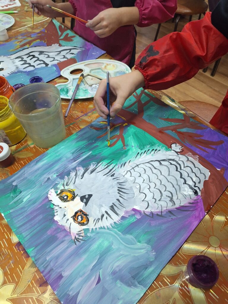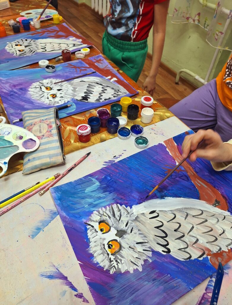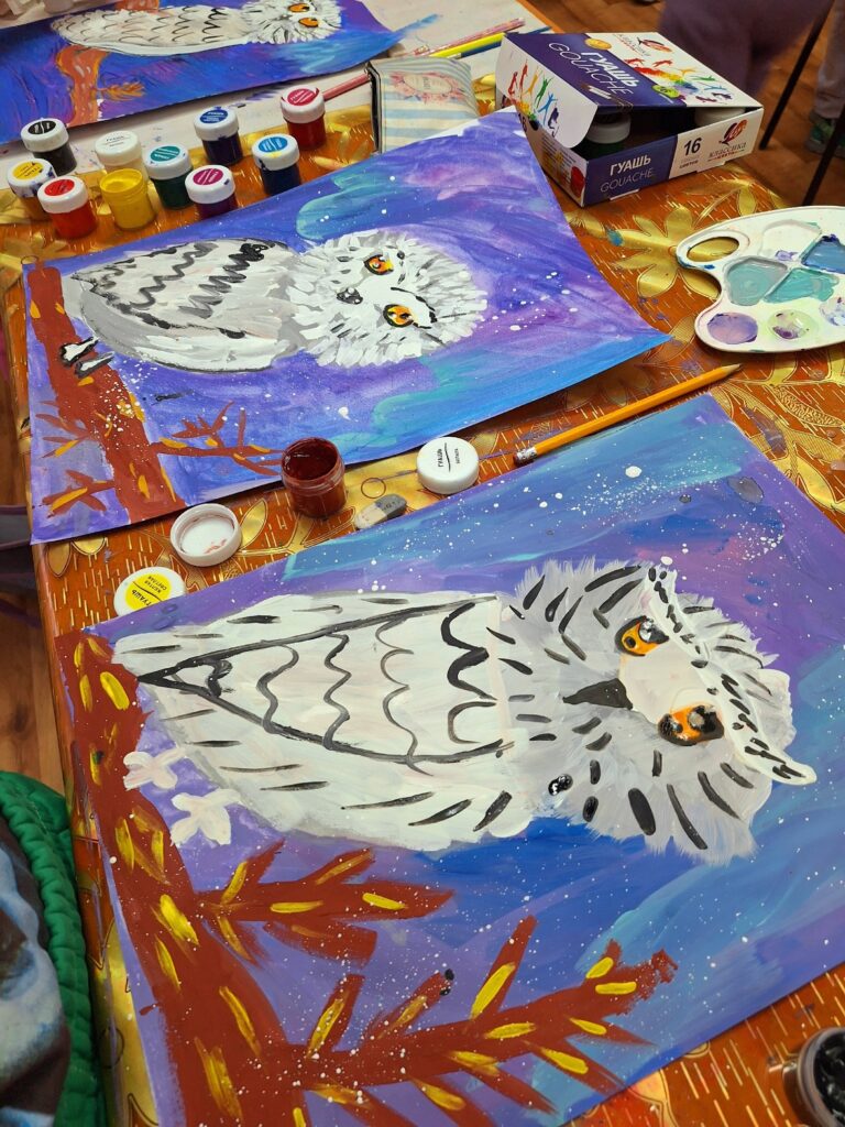 Полярная сова, с занятий ИЗО, получилась весьма милой.