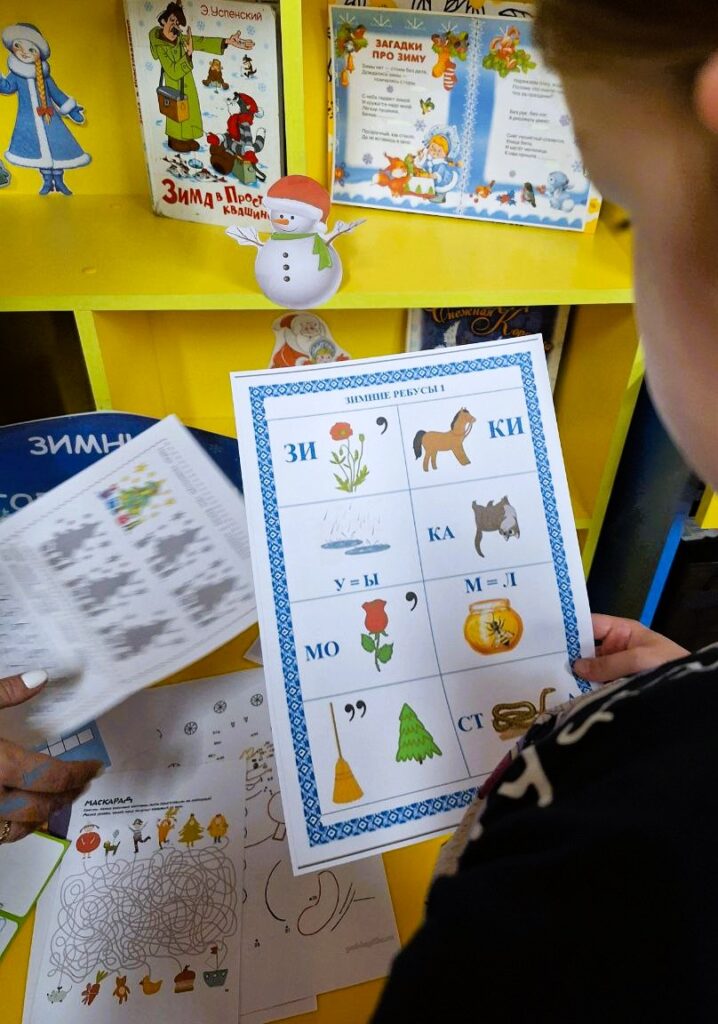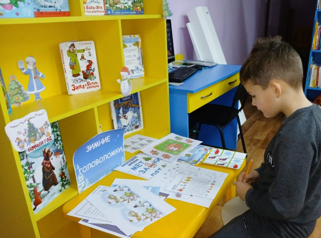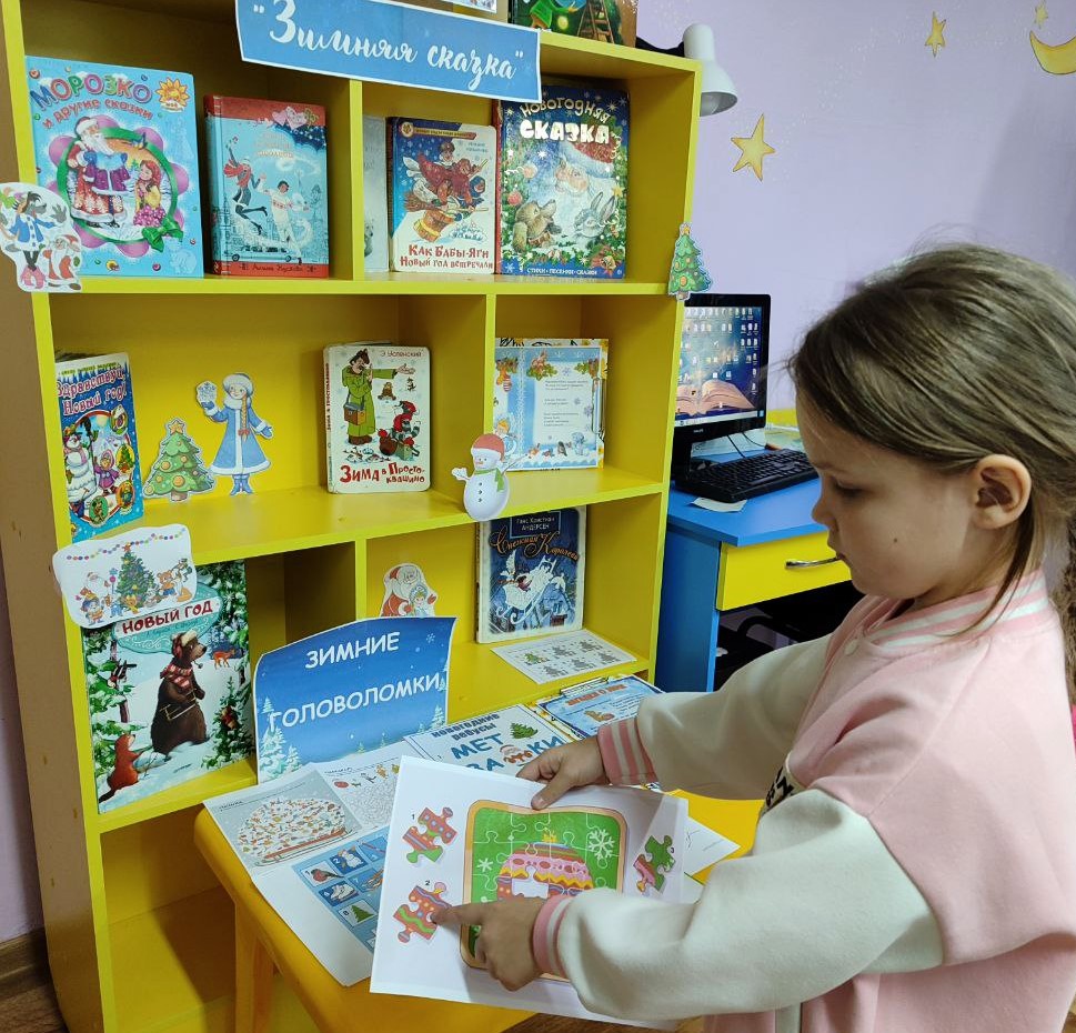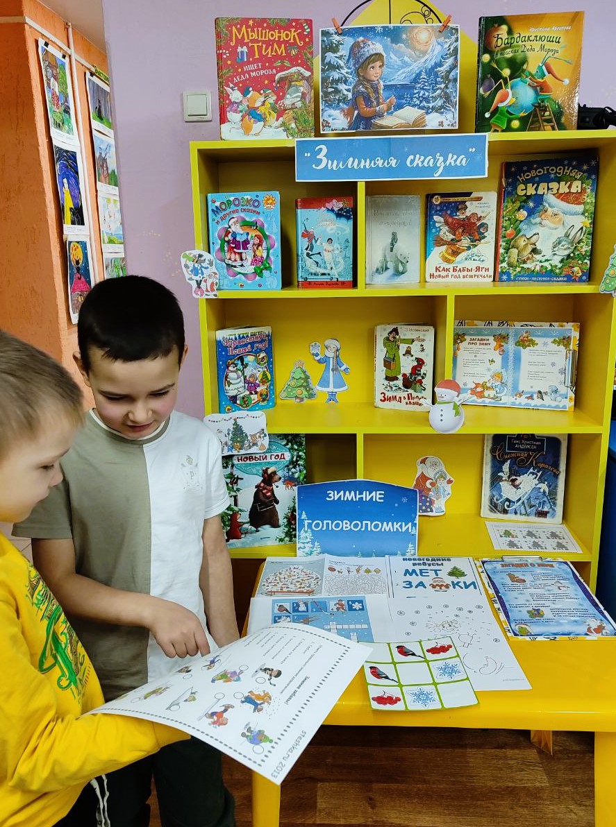 На младшем абонементе была оформлена книжная выставка «Зимние сказки», на которой представлены новинки книг и популярные книги не только с младшего, но и старшего абонементов. Это увлекательные сказки про Деда Мороза и Снегурочку, Снеговика и жителей леса, приключенческие рассказы, веселые стихи и загадки на тему зимы и праздника Нового года, популярные новогодние песни. А также юным читателям было предложено выполнить интеллектуальные задания «Зимние головоломки»: пазлы-снежинки, судоку, «Найди отличия», загадки о зимних явлениях и многое другое.