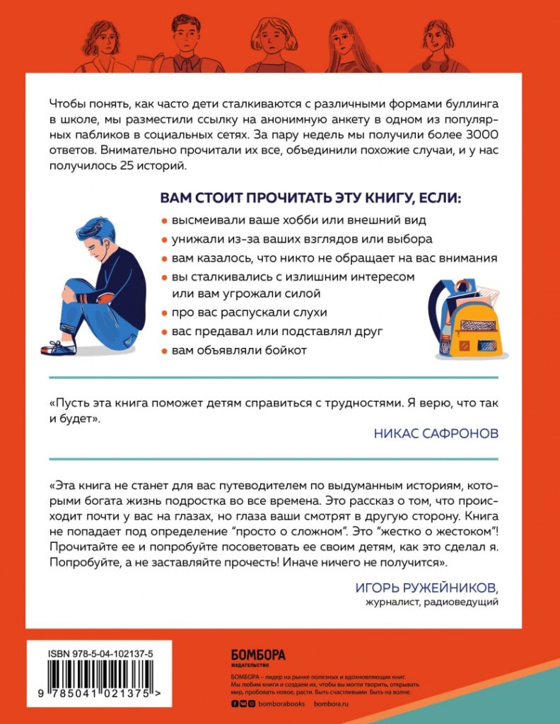 Чтобы понять, как часто дети сталкиваются с различными формами буллинга в школе, авторы разместили ссылку на анонимную анкету в одном из популярных пабликов в ВК. За пару недель они получили более 3000 ответов, внимательно прочитали их все, объединили похожие случаи, и получилось 25 историй.