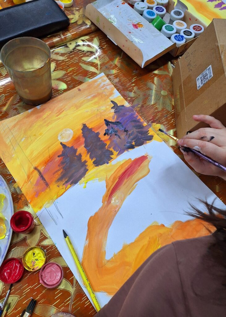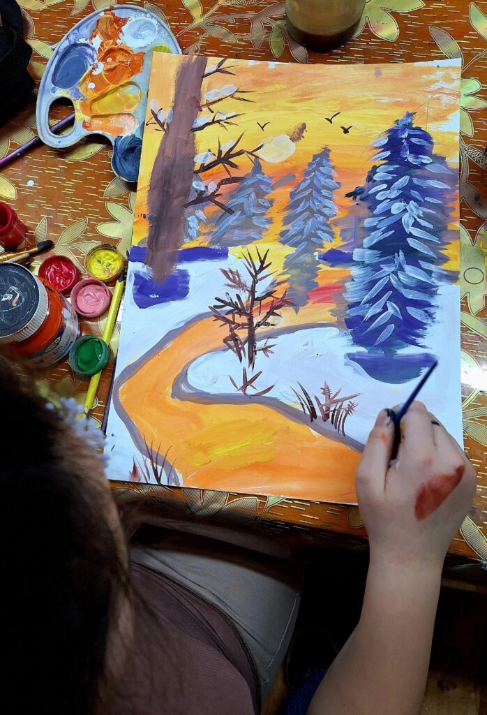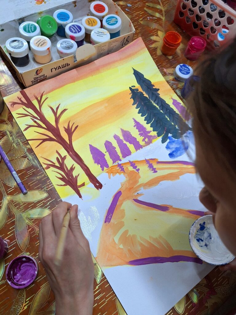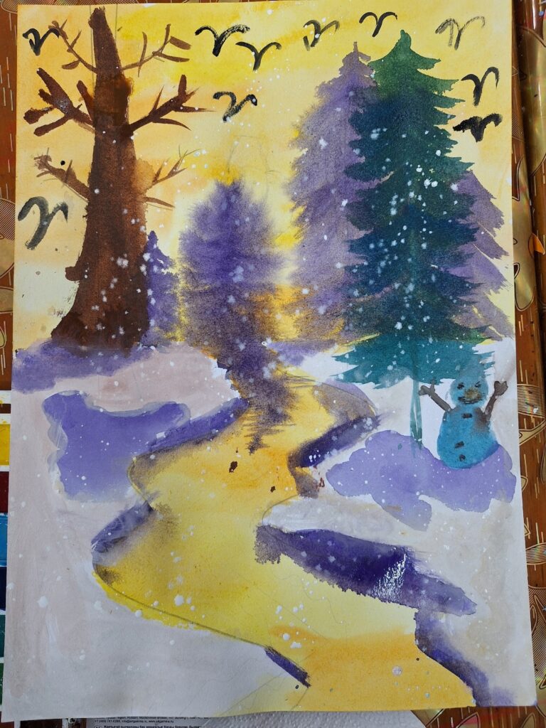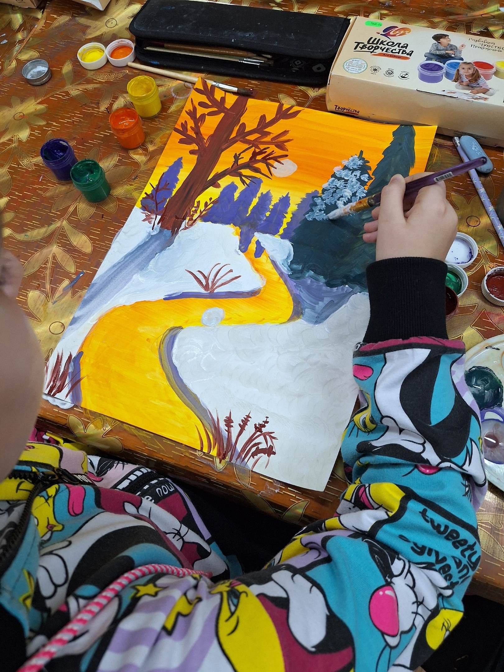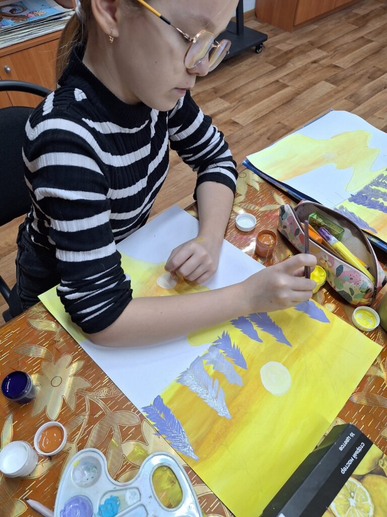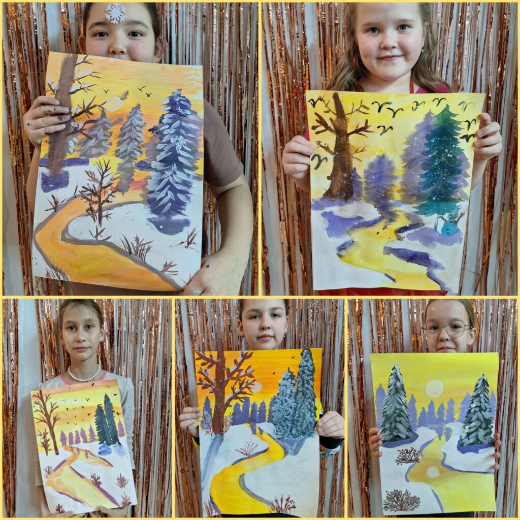 ️На заключительном занятии творческой площадки детской библиотеки рисовали зимний пейзаж.
