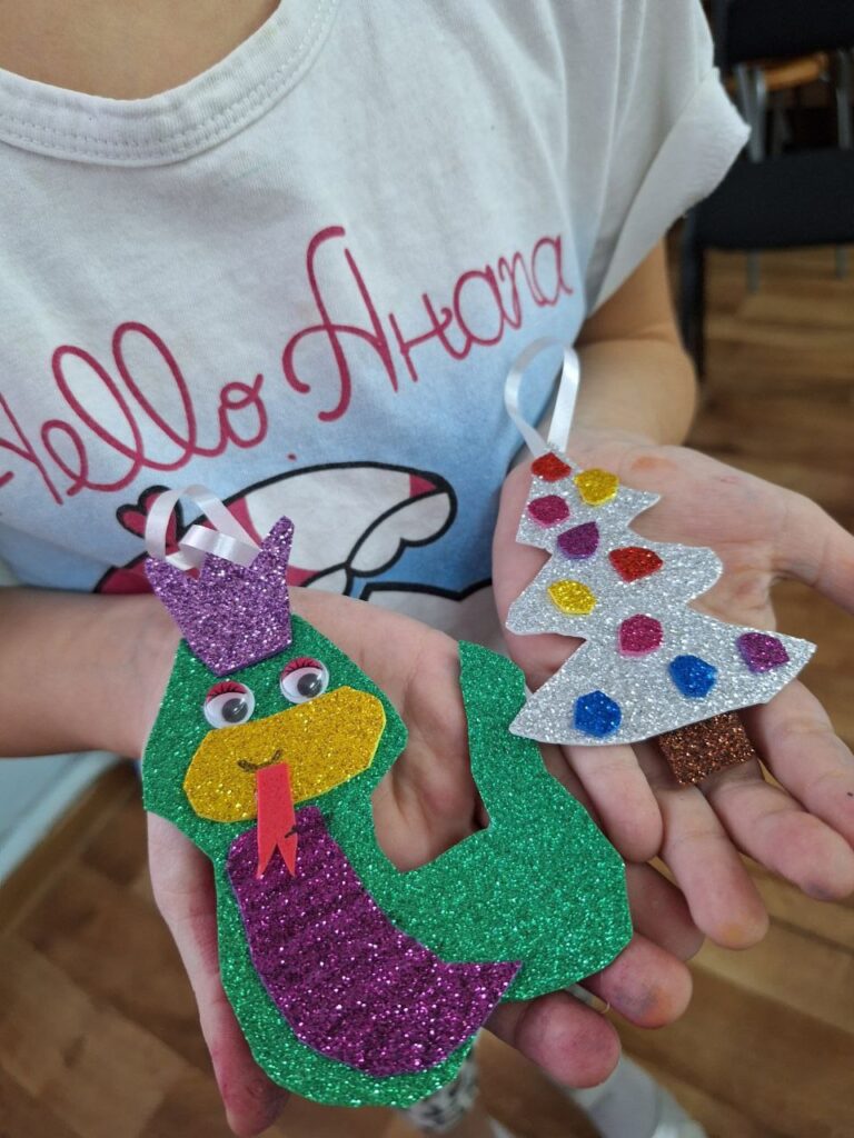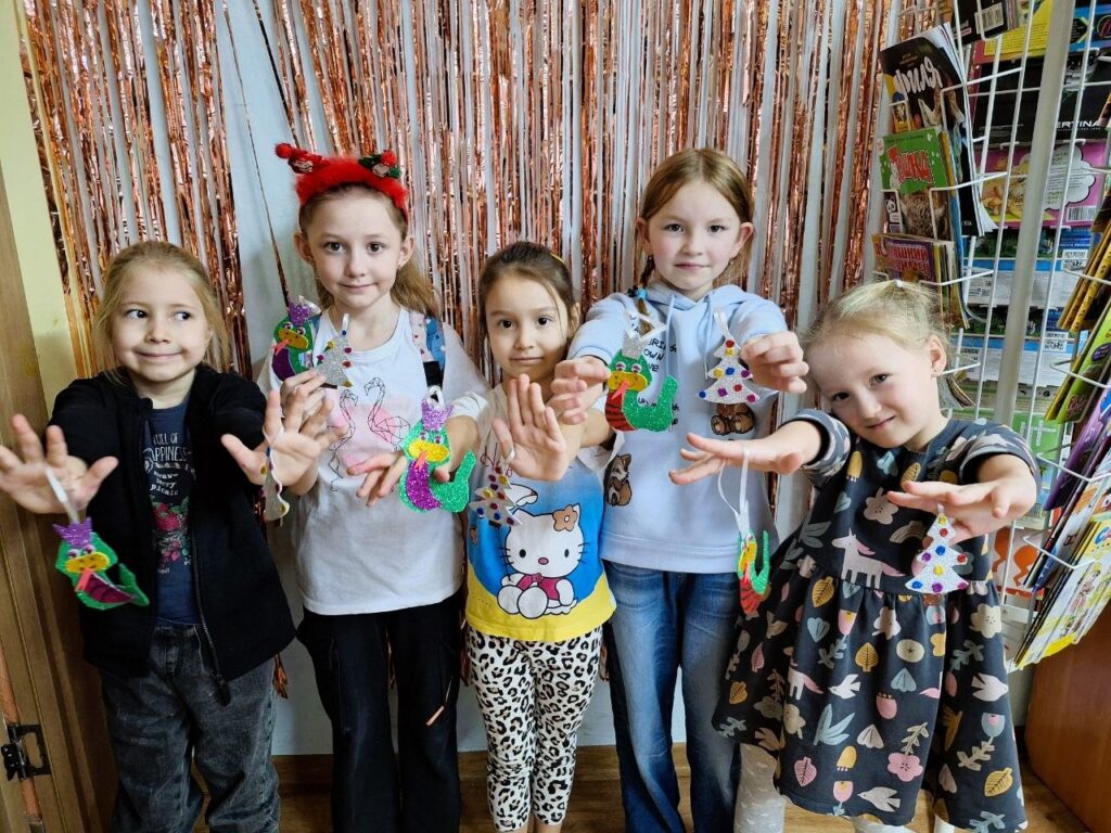 В преддверии новогодних праздников Детская библиотека организовала творческое занятие по созданию новогоднего сувенира в виде ёлочной игрушки «Змейка».