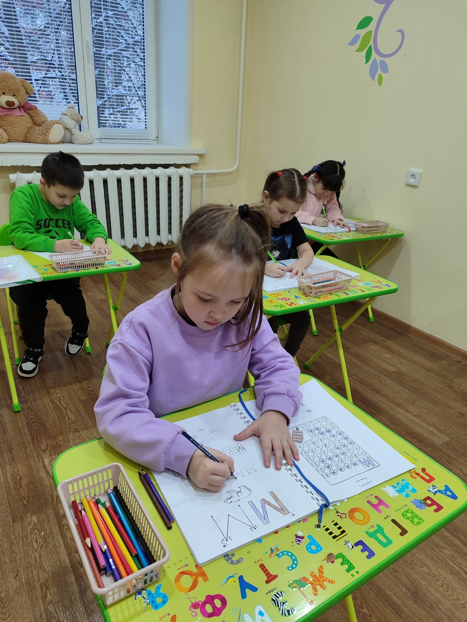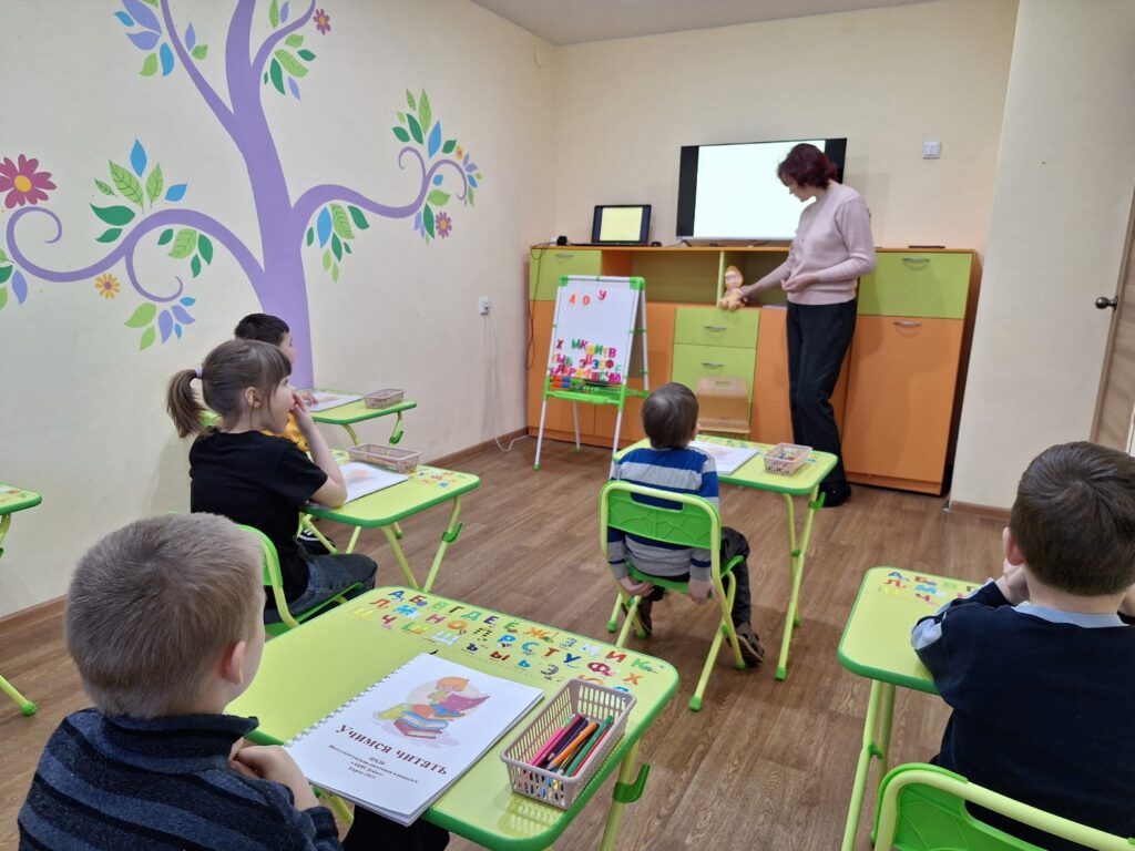 Дошкольники начали заниматься в «АБВГДейке». Они знакомятся с буквами и учатся читать.