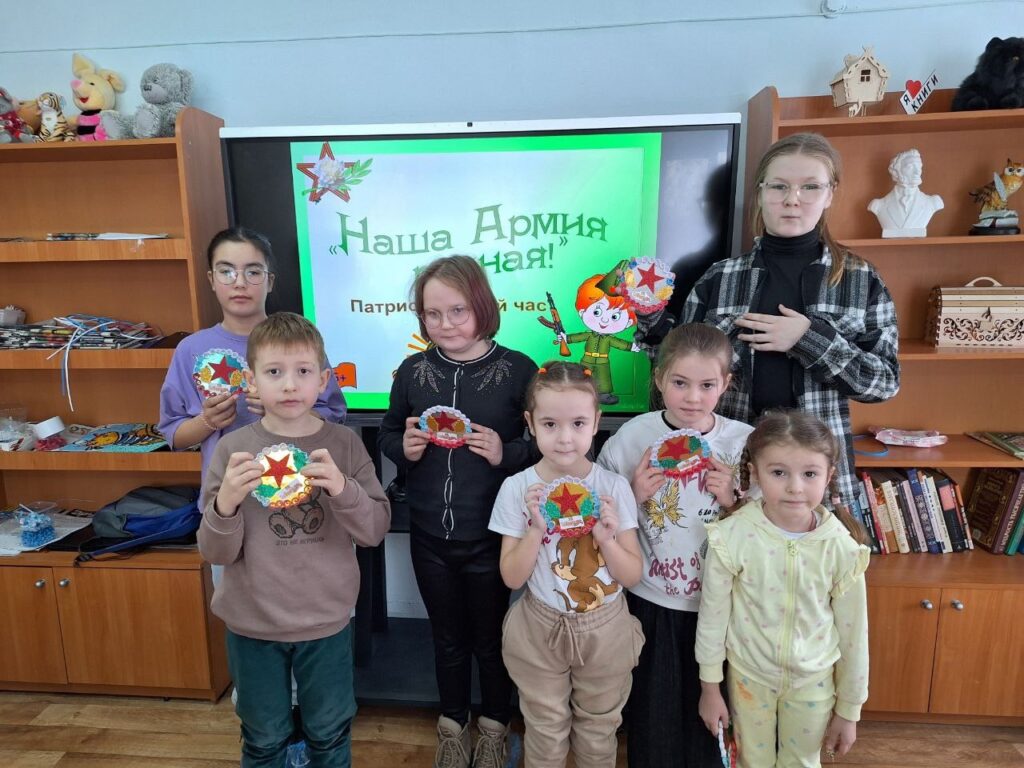 Ко Дню защитника Отечества работники детской библиотеки провели патриотический час «Наша Армия сильная!». В ходе беседы ребятам рассказали о героизме и отваге защитников Родины, а также о значимости этого важного праздника. Присутствующие посмотрели видеоролик, отвечали на вопросы викторины. Завершилось мероприятие творческим мастер-классом, на котором дети изготовили памятные сувениры для своих близких. Мероприятие было проведено для детей, в семьях которых есть участники СВО.