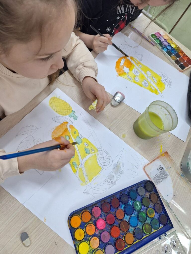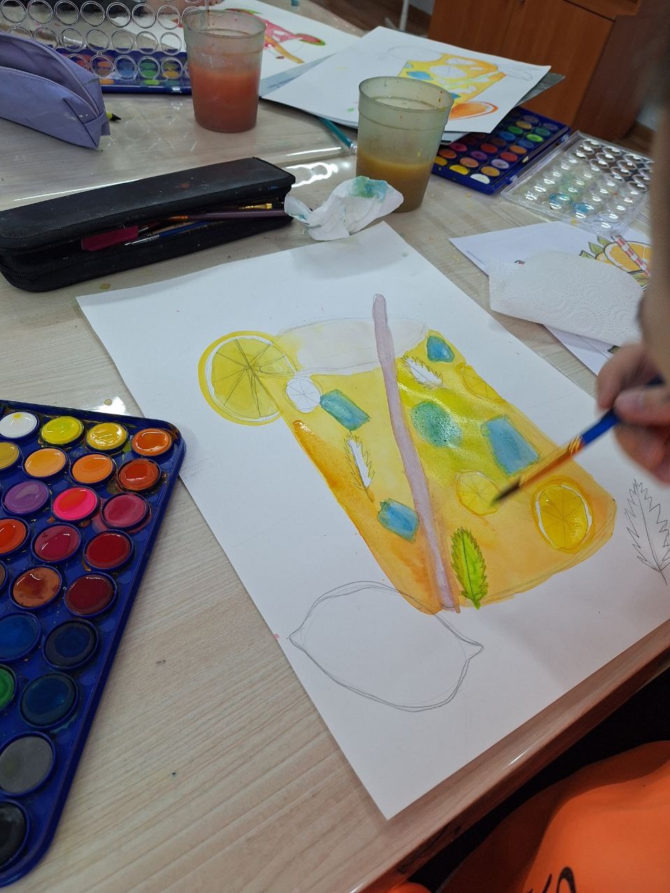 С ребятами пробовали нарисовать акварельный скетч. Для первого раза получилось неплохо, хотя много ошибок выявили на разборе. Будем учиться дальше!