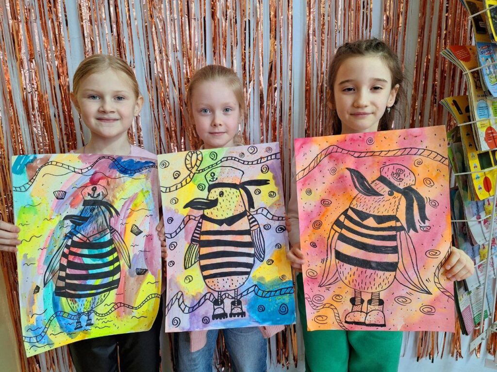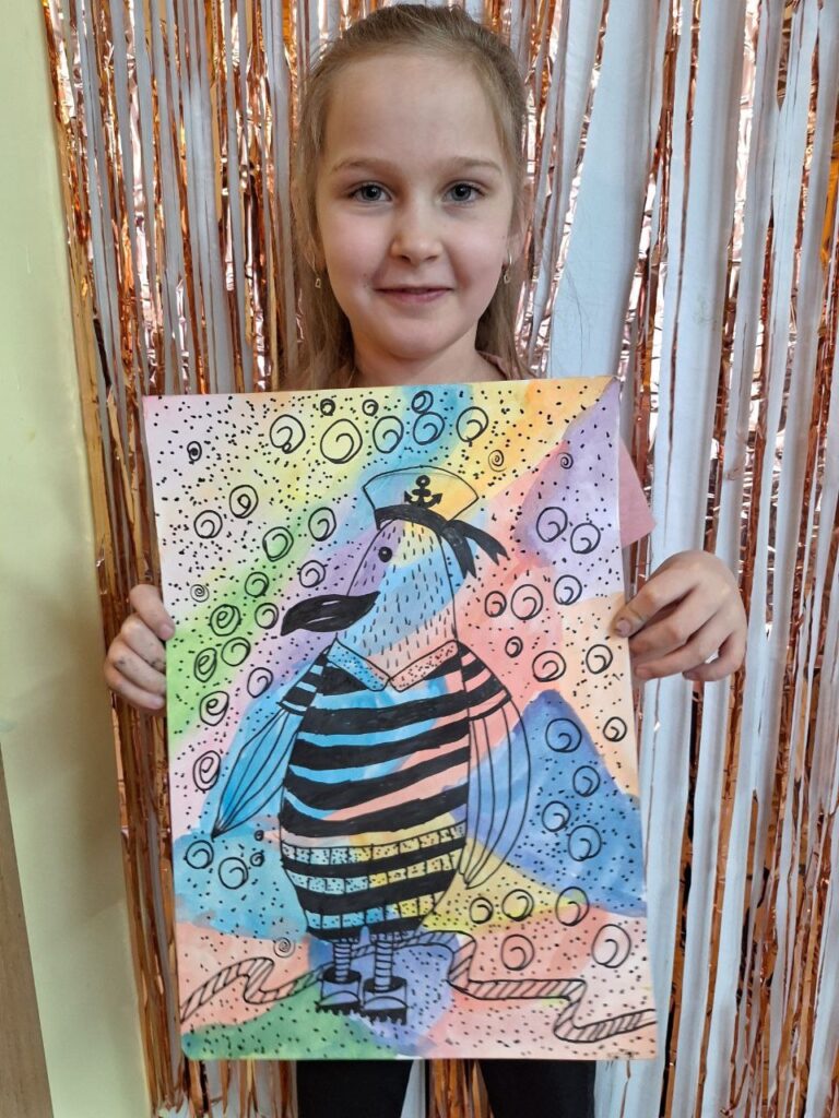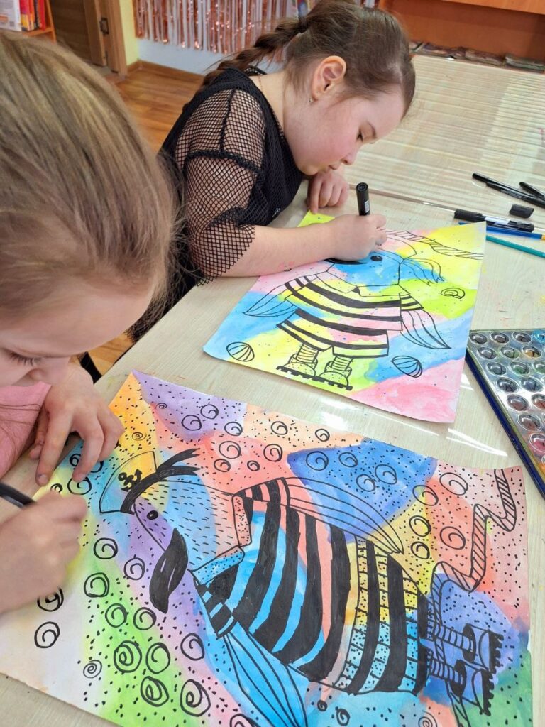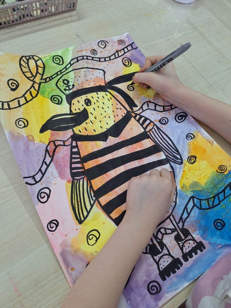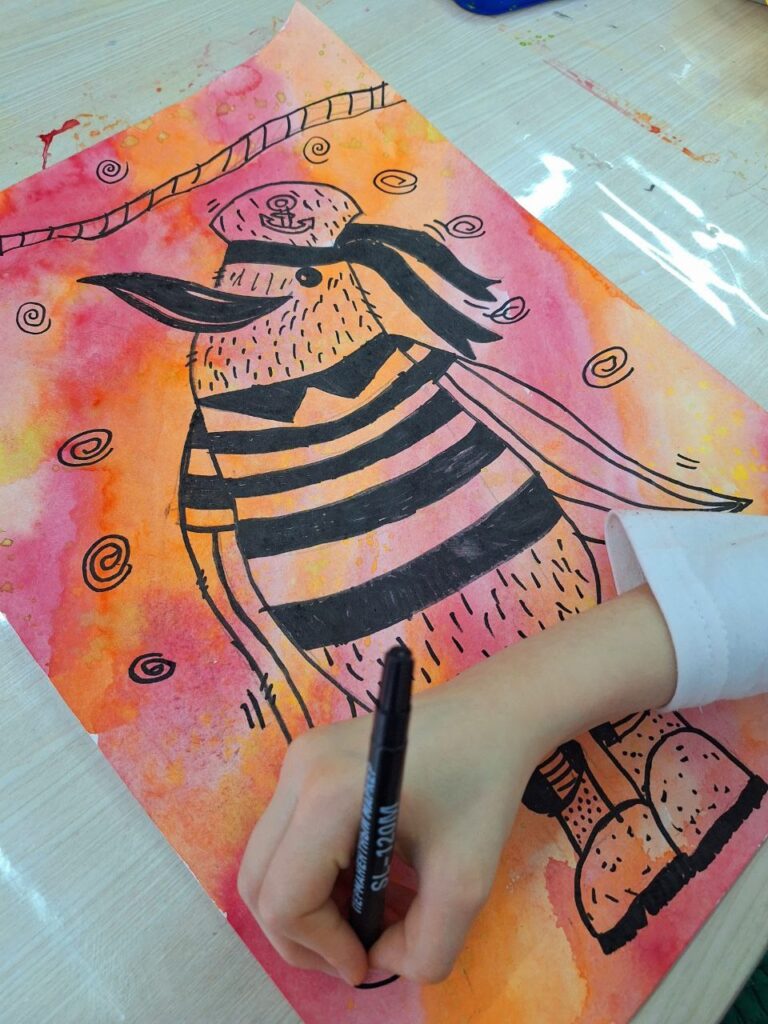 Акварель + маркер.