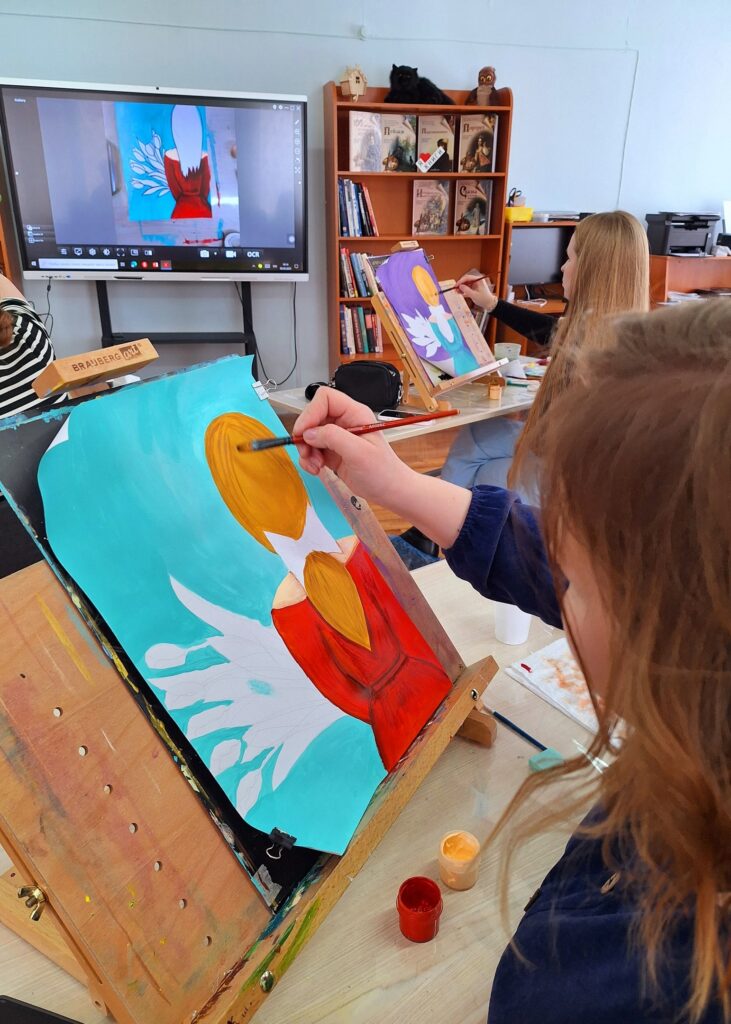 Вчера в читальном зале детской библиотеки состоялась творческая встреча – мастер-класс по живописи гуашью «Нежность» от ведущего библиотекаря Грязновой Альбины Мухаметьяновны.
