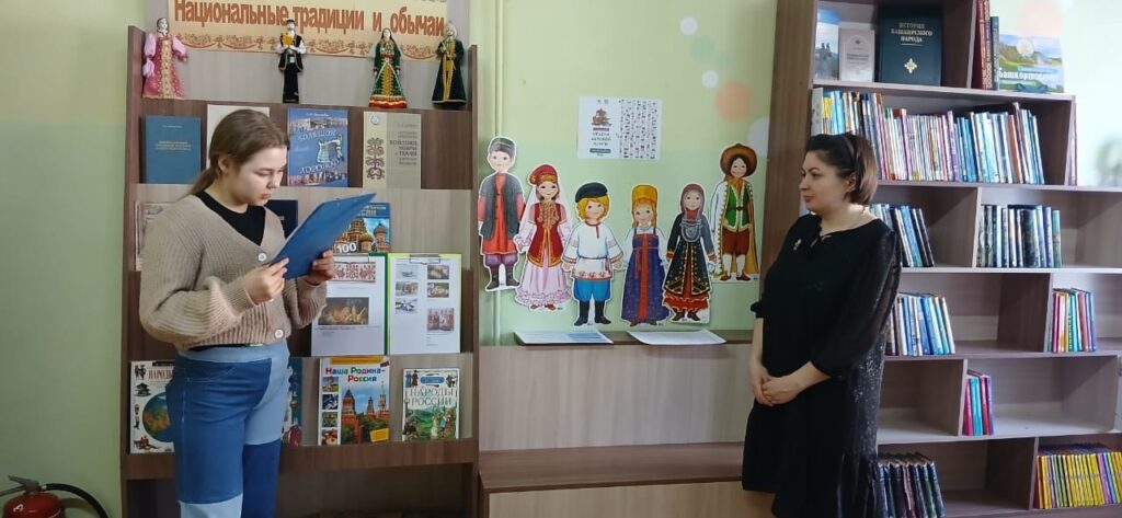 В рамках Недели детской книги для читателей библиотекарь проводит увлекательное занятие — этнографическое путешествие «Национальные традиции и обычаи». Участники узнают много интересного о народах Башкортостана: их жизни, традициях, праздниках и искусстве. Особенностью выставки является интерактивный формат: дети участвуют в викторинах, тестах и разгадывают загадки, чтобы проверить свои знания и узнать больше о культуре республики.