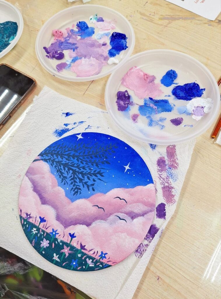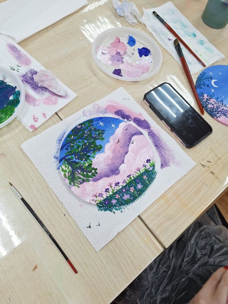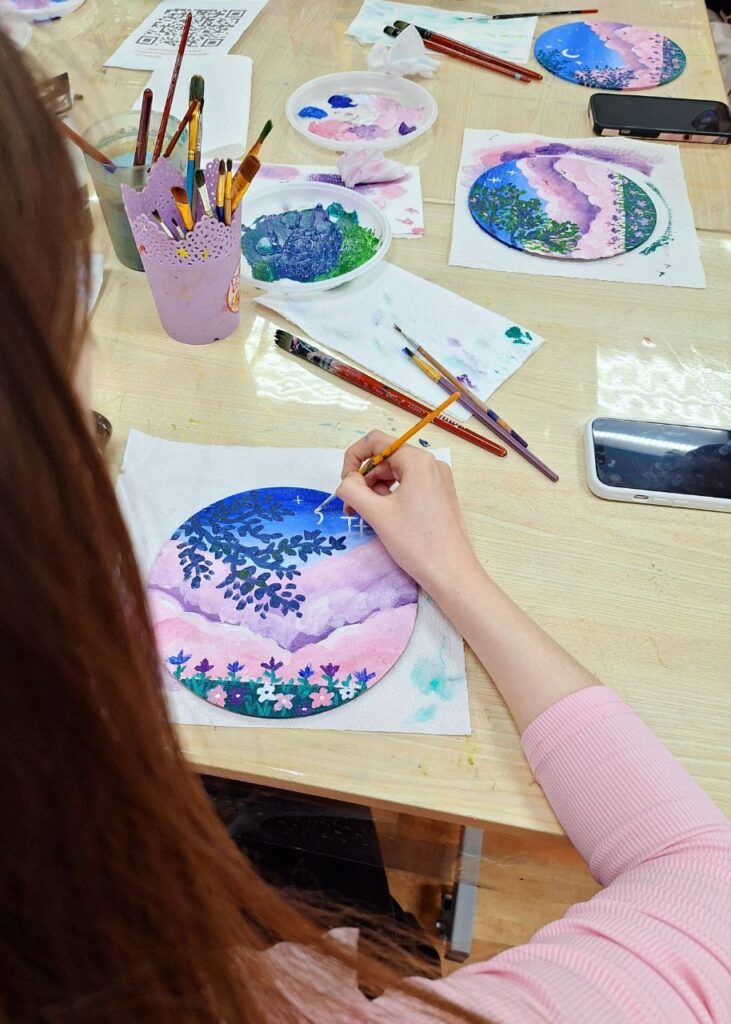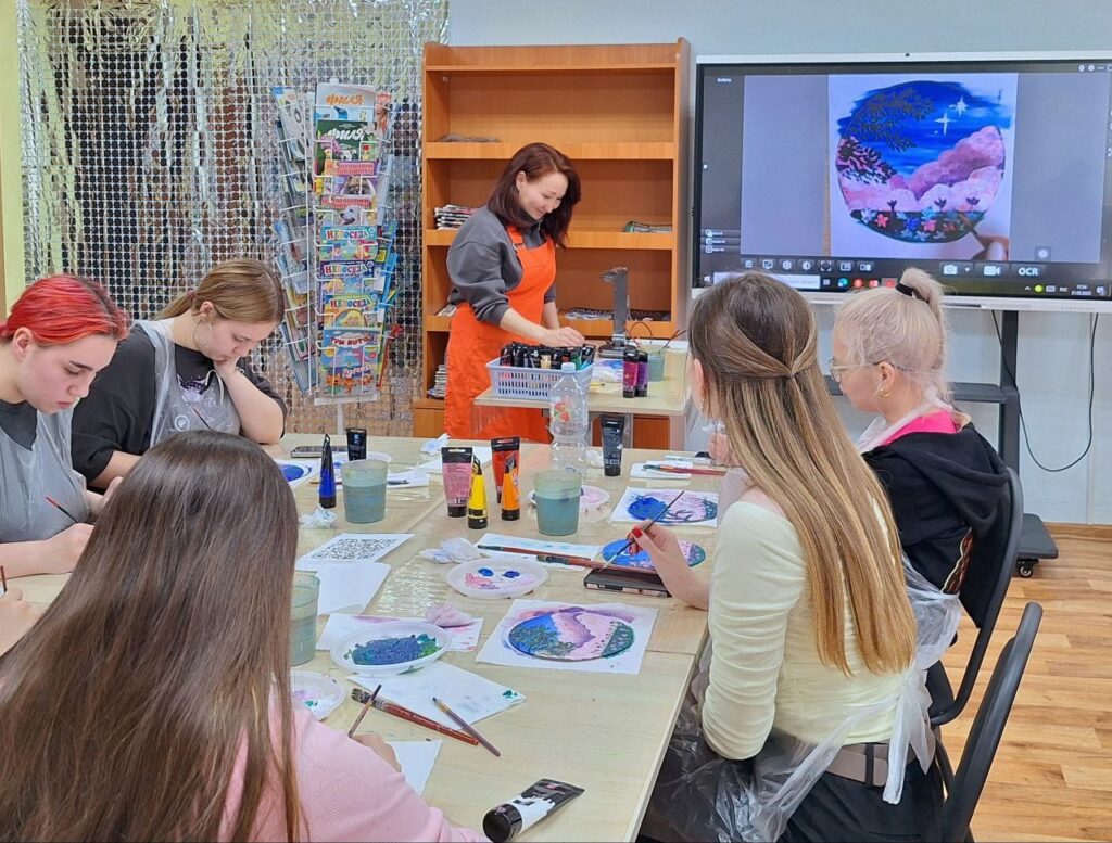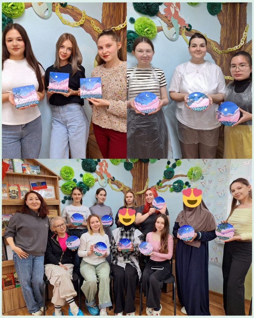 В детской библиотеке прошёл увлекательный мастер-класс по акриловой живописи для студентов Бирский медико-фармацевтический колледж.