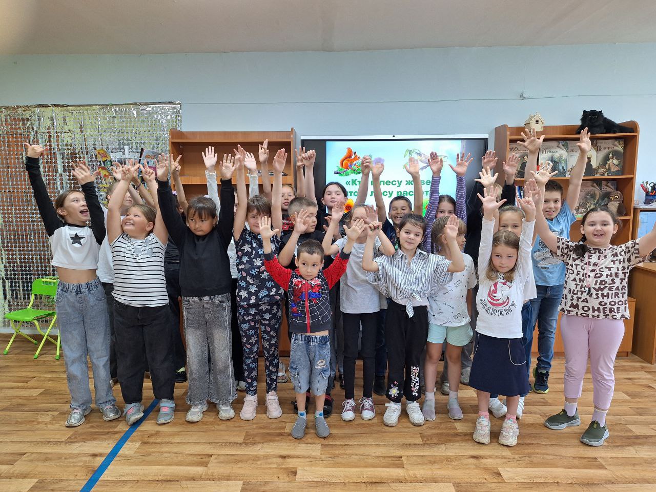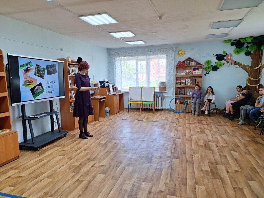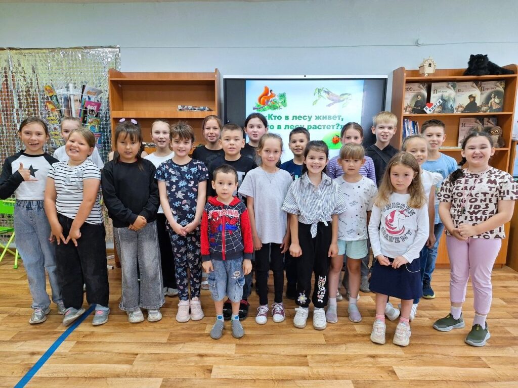 В библиотеке снова весело и шумно. И познавательно! Главный библиотекарь Гайнцева Елена Георгиевна подготовила для юных читателей игру-путешествие «Кто в лесу живет?Что в лесу растет?».
