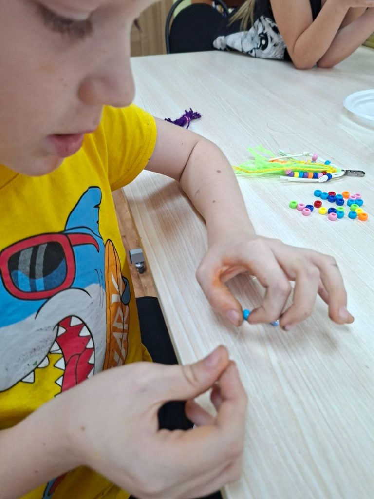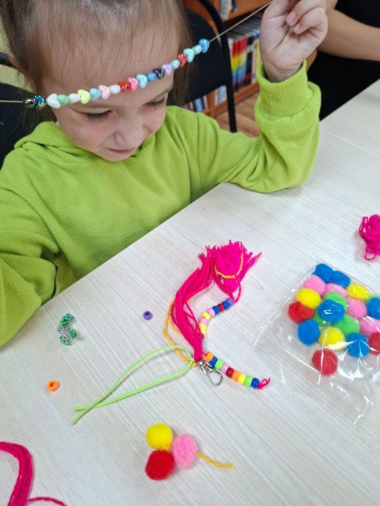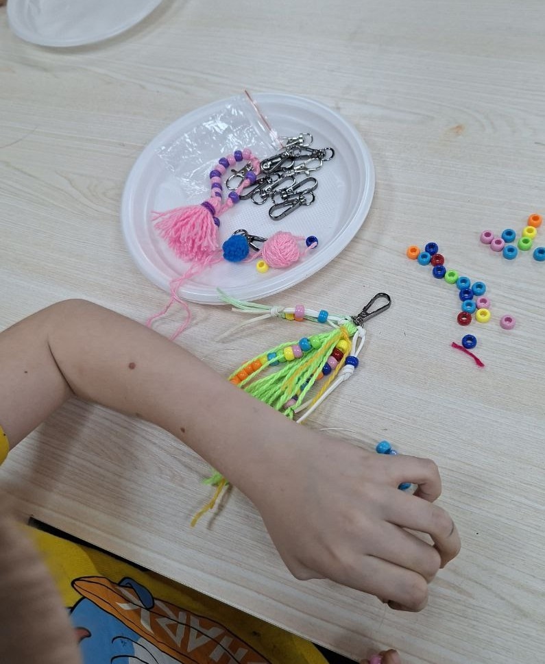 Прошлой субботой вместе с нашими ребятишками создавали очаровательные брелоки-подвесы из ярких бусинок и разноцветной пряжи. Каждый ребёнок проявил свою фантазию и креативность, придумывая уникальные цветовые сочетания.