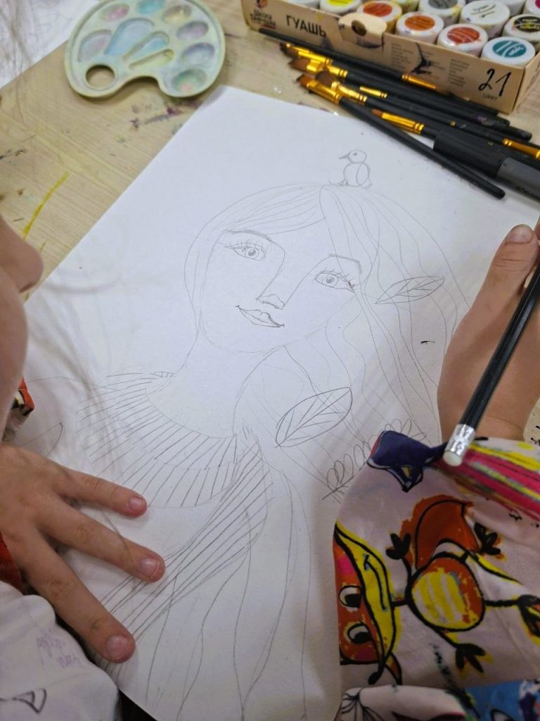 На субботнем занятии с детьми мы создавали яркий, насыщенный портрет Осени. Этот творческий процесс стал не только игрой красок и фантазии, но и настоящим мастер-классом по рисованию лиц — мы учились передавать пропорции, ловить характер и настроение каждого портрета!