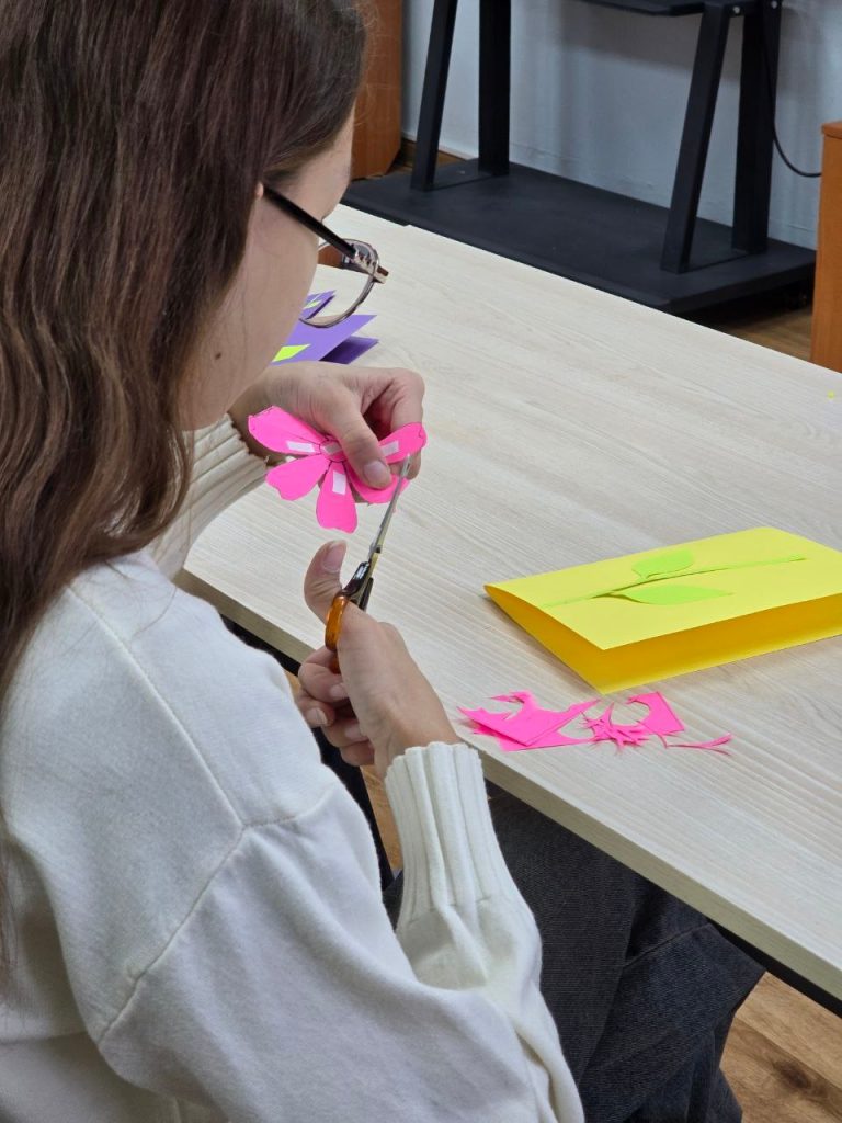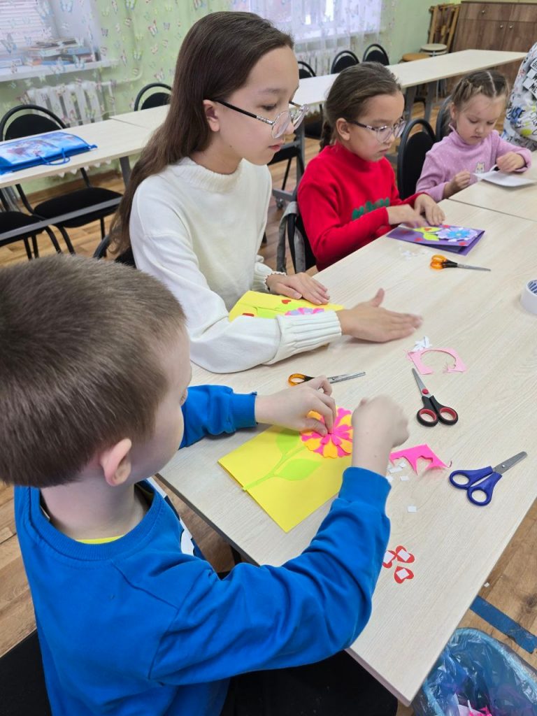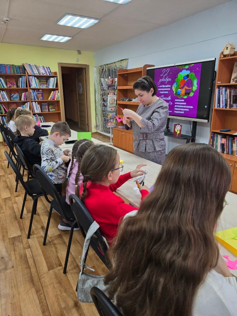 В честь праздника Детская библиотека провела мастер- класс для юных читателей. Ребята создавали открытки — нежные цветочки, в которых главная ценность скрыта внутри. Ведь самое важное — не внешняя красота подарка, а тёплые слова, наполненные искренней благодарностью и любовью.