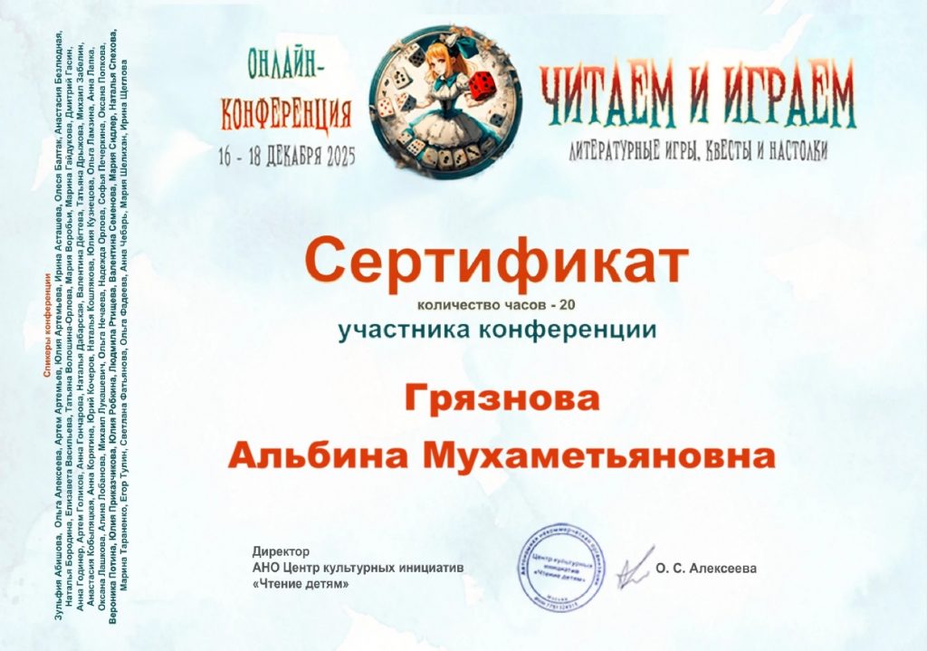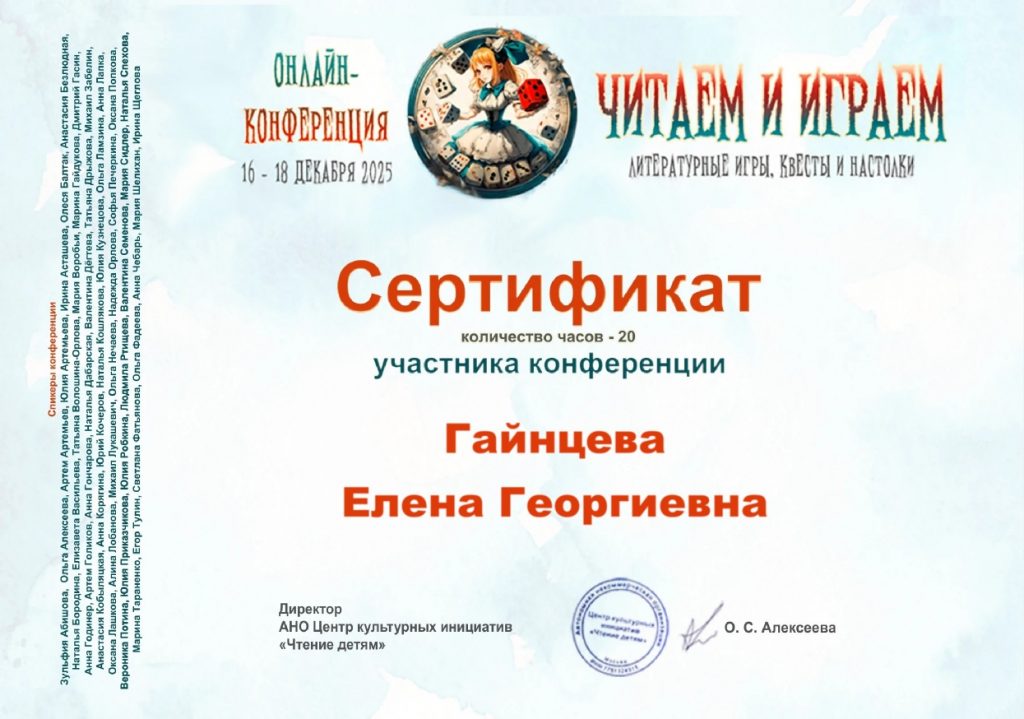 Коллектив детской библиотеки принял участие в масштабной ежегодной онлайн-конференции «Читаем и играем. Литературные игры, квесты и настолки», организованной Центром культурных инициатив «Чтение детям», чтобы обменяться опытом, лучшими практиками, новыми идеями в области популяризации чтения среди детей и подростков через игровые форматы.
