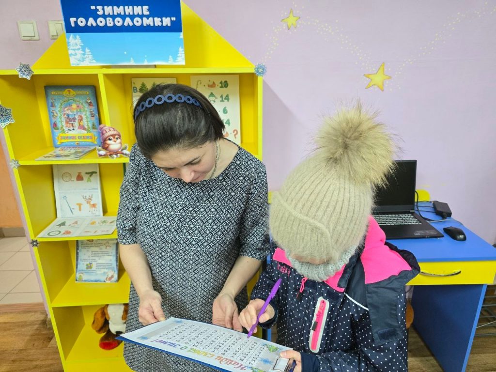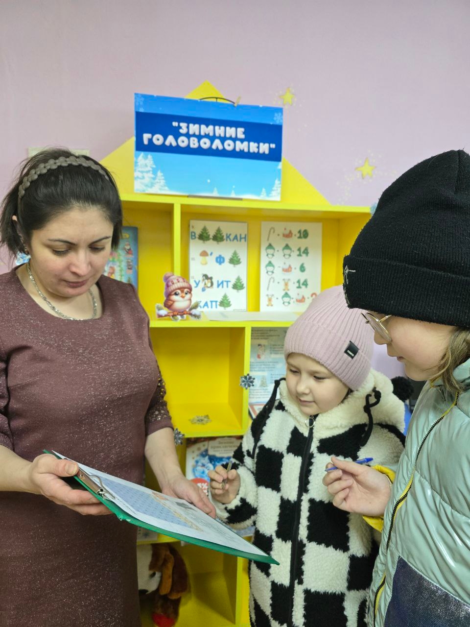 Дети также разгадывали «Зимние кроссворды», решали филворды и математические задачи с зимними персонажами, отгадывали новогодние ребусы.