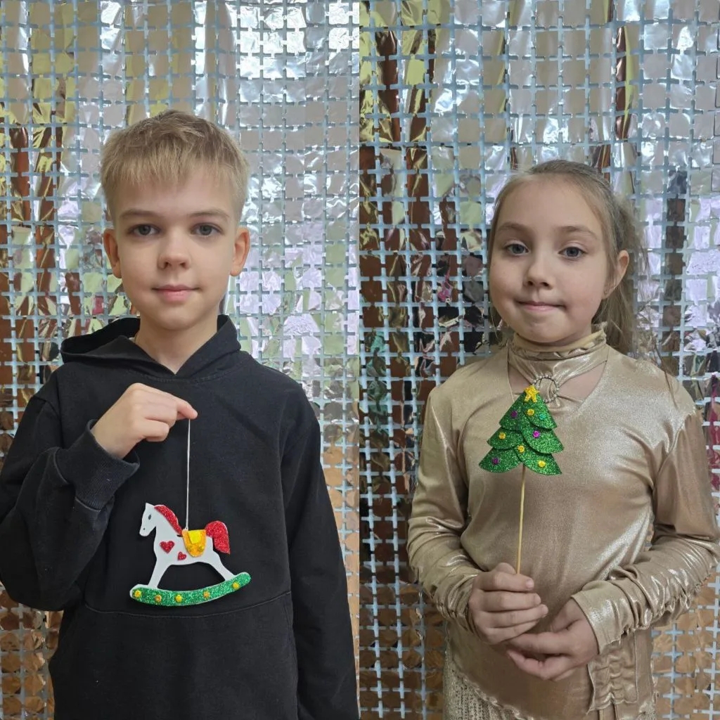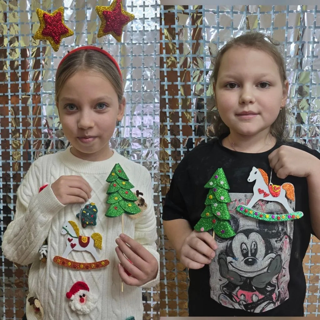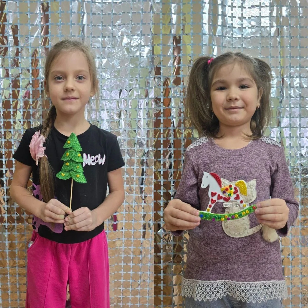 На очередном занятии «Волшебных ладошек» дети смастерили символ Нового года — нарядную ёлочку и символ 2026 года — яркую лошадку.