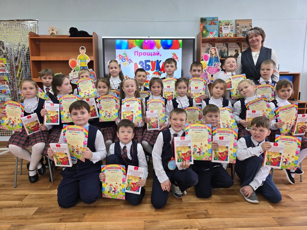 1А и 1Б классы МБОУ Лицей г.Бирска вместе с классными руководителями Ямуровой Наилей Тимербаевной и Масловой Натальей Анатольевной пришли в Детскую библиотеку, чтобы попрощаться с Азбукой.